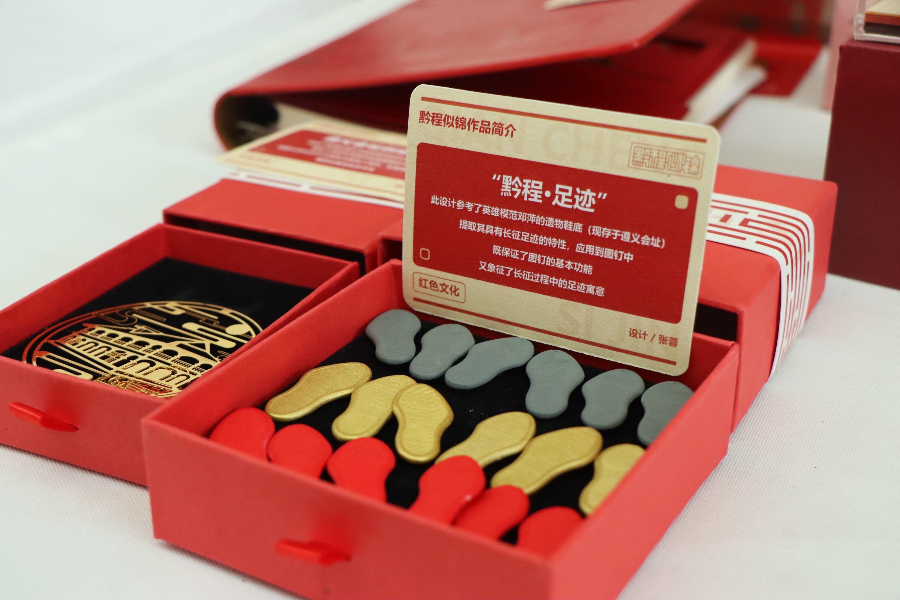 足印寓意长征的足迹,蜡染寄托民族的深情。4月11日,“文化新风尚 红色新风采”贵州红色文创设计征集活动线下终审在贵州美术馆举行,一件件兼具红色底蕴与创意巧思的作品集中展出,接受专家评委团的最终检阅。