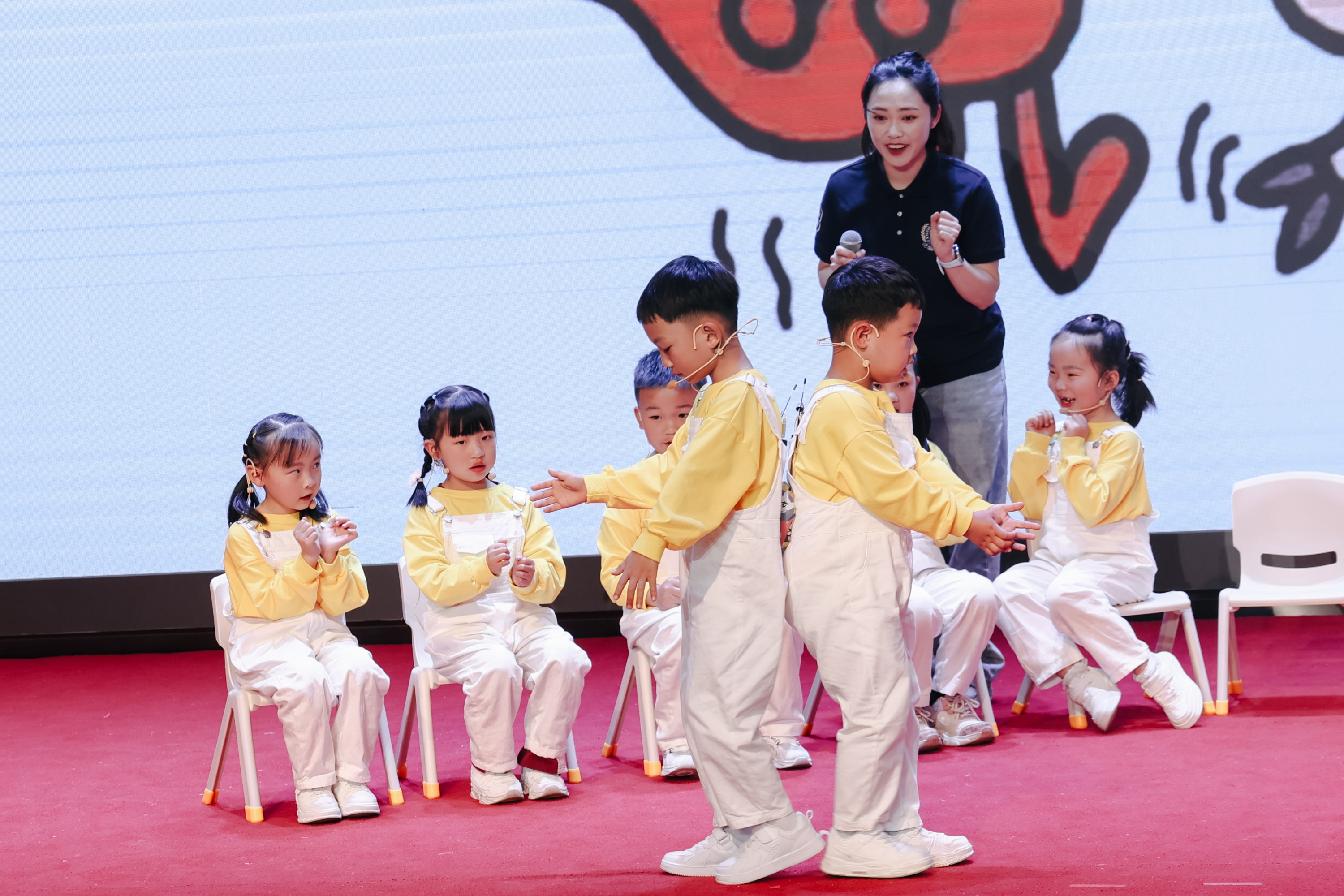 清镇广大第一幼儿园与白云区第五幼儿园的孩子们带来了《螃蟹小裁缝》《小蝌蚪找妈妈》的自编绘本剧表演,呈现了幼儿基于阅读理解,通过想象补充情节,并运用语言、歌唱、舞蹈等戏剧元素进行的二次创作。