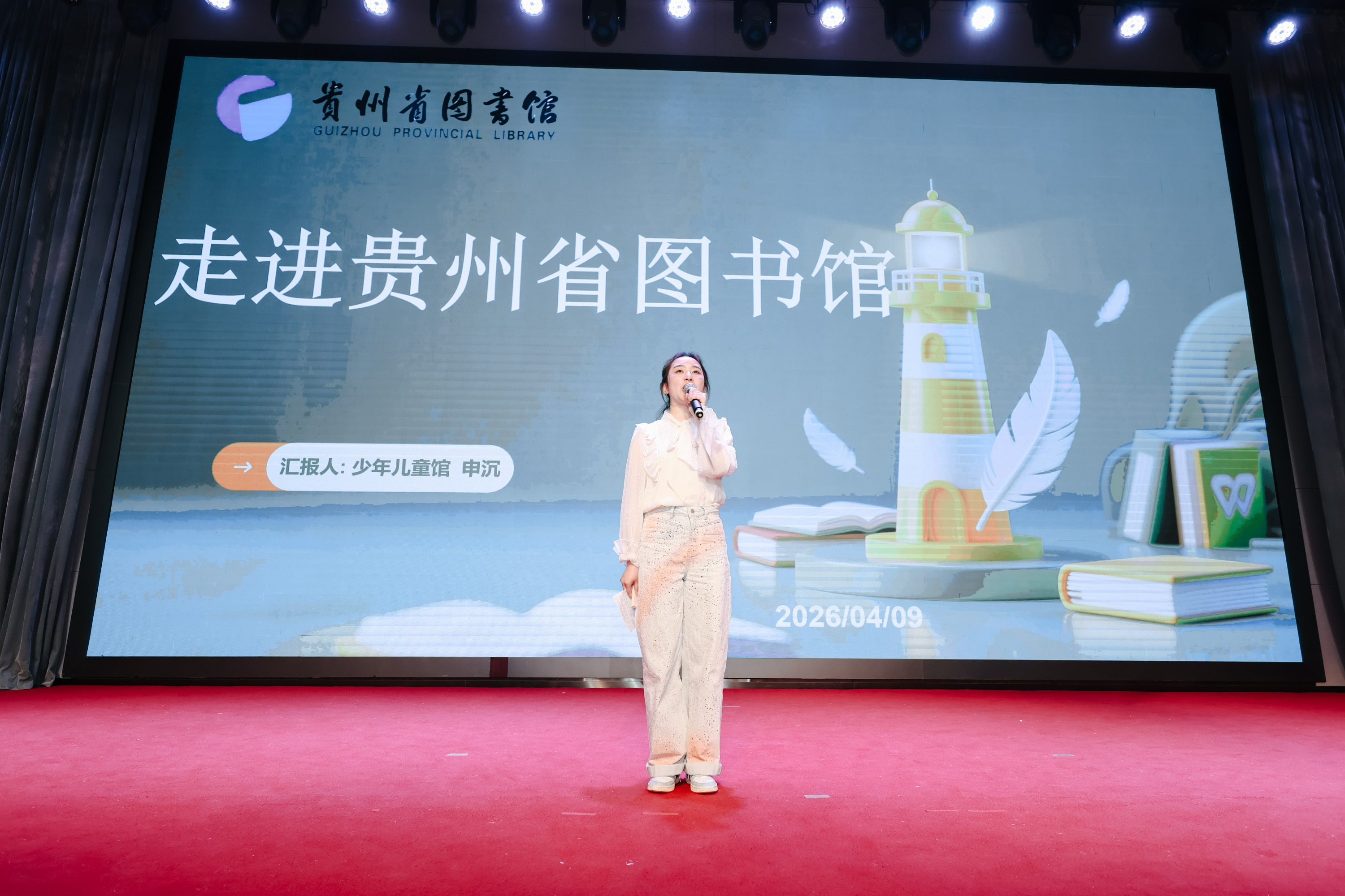 活动在白云区第二十七小学桑茂林老师与贵阳市第三实验幼儿园黄瑞老师的共同主持下拉开序幕。现场首先播放了宣传片《阅读点亮童心》,生动回顾了贵阳市以《全民阅读促进条例》及学前教育政策为引领,依托省级课题与市级高质量发展项目,通过教研赋能、家园社协同,推动绘本“阅读分享”研究的实践历程与阶段性成果。随后,贵州省图书馆儿童馆申沉老师借助丰富的图片与视频,以生动的讲述带领大家“走进”贵州省图书馆,感受书香空间的独特魅力,向大家发出阅读的邀请。