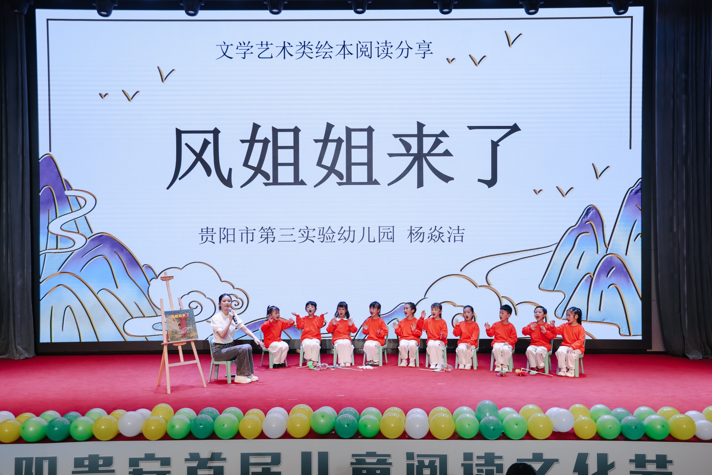 来自贵阳市实验幼儿园、花溪幼儿园、青岩幼儿园等多所幼儿园的小朋友们,朗诵了自己创编的散文诗《风姐姐来了》。孩子们用“跳进”“钻进”“甜甜的”“凉凉的”等词语,生动表达了对风与大自然里一切的感知、想象与诗意表达。