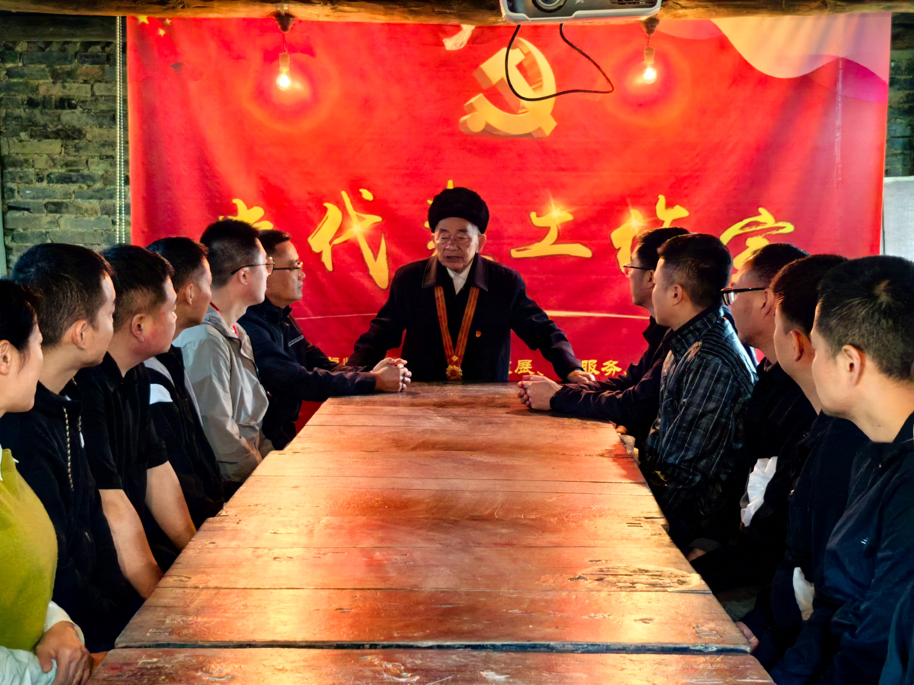 贵州边检总站第一期学习贯彻习近平新时代中国特色社会主义思想轮训班暨深入贯彻中央八项规定精神学习教育读书班全体学员在参观完“大发渠”和大发渠陈列馆后,邀请黄大发老支书在他当年指挥修建大发渠的“党代表工作室”,深情回顾他带领村民耗时36年在绝壁上开凿“生命渠”━━大发渠的艰辛历程。