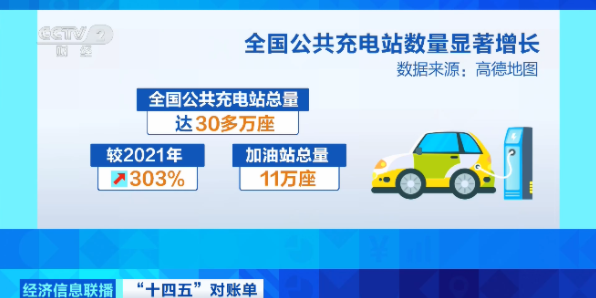 据统计,目前全国公共充电站总量达30多万座,较2021年增长303%,远超过加油站的11万座,为跨省长途出行提供了保障。