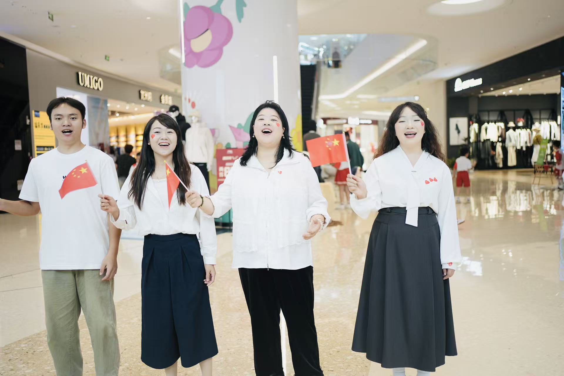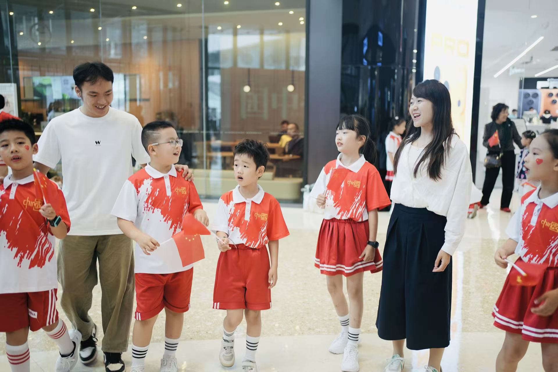 当清澈的童声在热闹的商场里响起,当小朋友们挥起手里的小红旗,那一刻,所有人都停下脚步,每个人心里都涌起同一种温暖——那就是对祖国妈妈满满的爱。