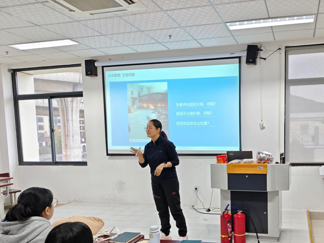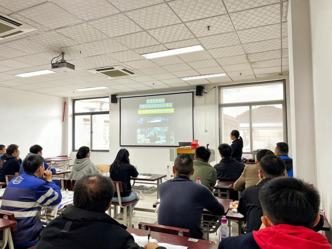 课堂上,董老师结合真实案例深入剖析消防安全的重要性,引导员工树立“我要安全、我会安全”的主动责任意识,推动安全理念从“被动接受”向“主动担当”转变。随后,董老师聚焦应急技能提升,紧扣地铁车站环境特点,不仅细致讲解了初期火灾扑救、火场逃生等关键技巧,还围绕紧急疏散组织、受限空间避险、现场人员救助等重点场景展开针对性指导。最后,董老师着重强调安全管理落地,明确如何将安全责任分解到每个岗位,通过常态化日常巡查、精准化隐患排查,构建“人人有责、处处防范”的消防安全长效机制,全面筑牢企业消防安全防线。