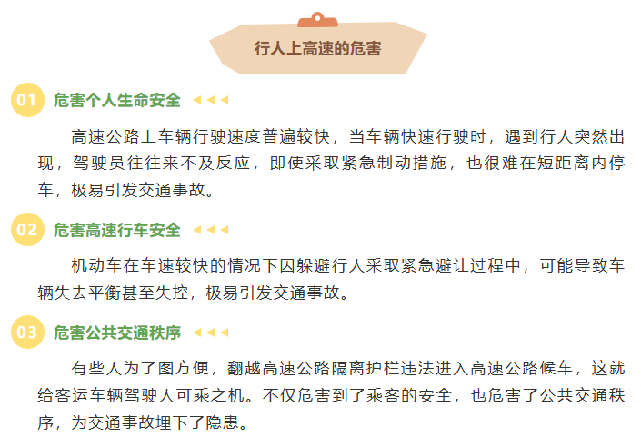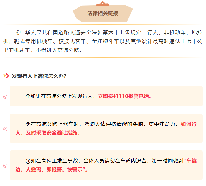 了解情况后,民警随即护送老人下高速。一路上,民警耐心劝导,对老人进行交通安全教育,并结合过往因行人闯入高速引发的典型事故案例,详细讲解行人进入高速公路的严重危害性,重申高速公路属于封闭式机动车专用道路,行人严禁进入的交通法规。老人也深刻认识到自己行为的危害性,向民警郑重承诺今后绝不会再擅自闯入高速公路。