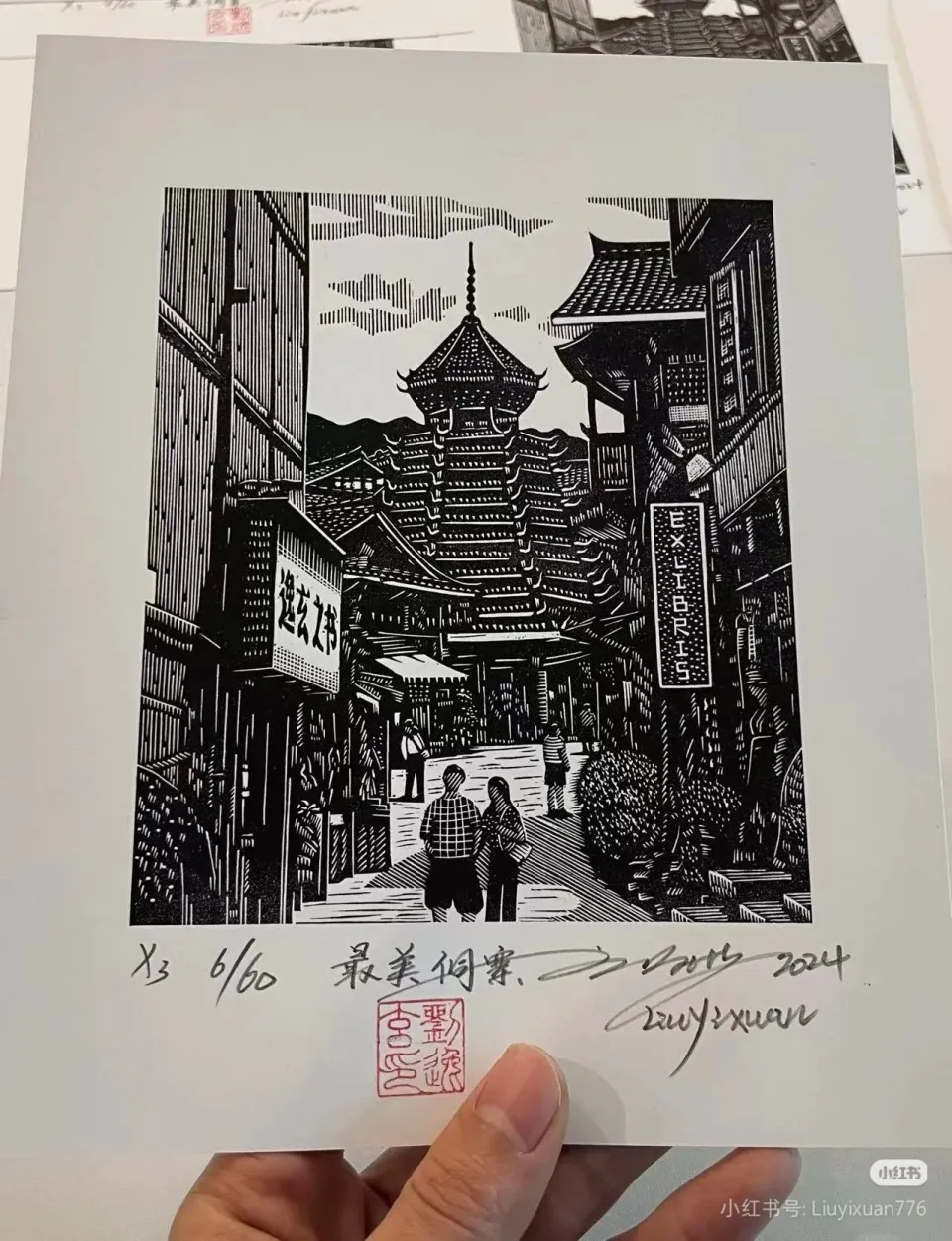 此前,刘先生称这幅版画作品是他去年参加贵州省级展览获得的优秀奖作品,同时被六盘水美术馆收藏。有网友把图片发来询问,他才发现自己的作品被抄袭了。