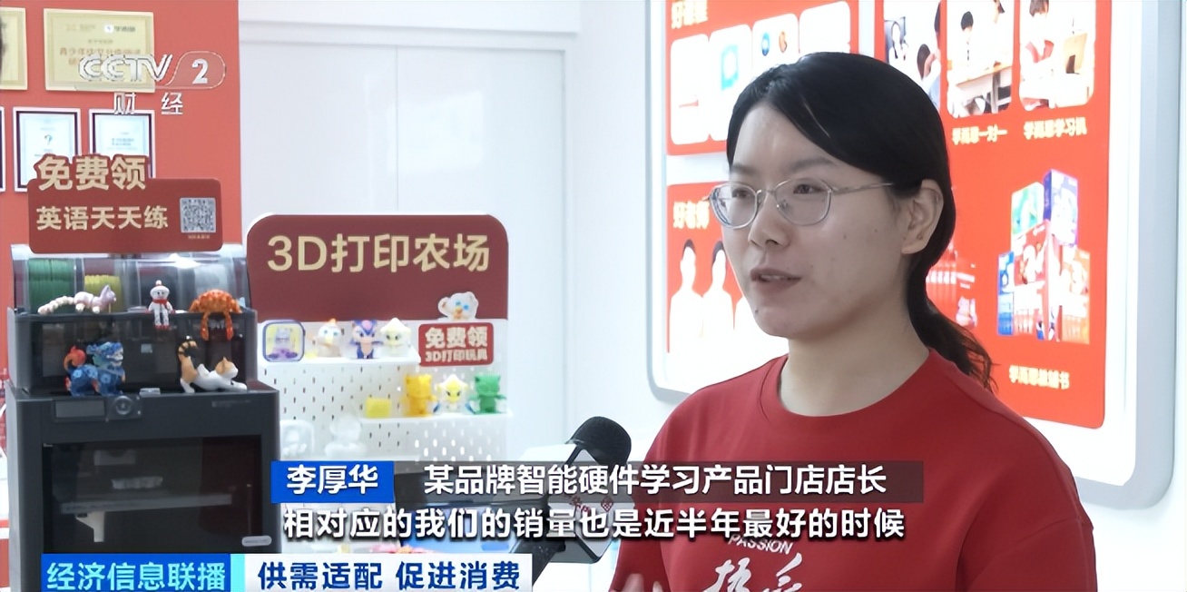 某品牌智能硬件学习产品门店店长 李厚华:我们门店目前人流量是近半年的最高峰,相对应的,目前销量也是近半年最好,整个北京每天销量在近百台。