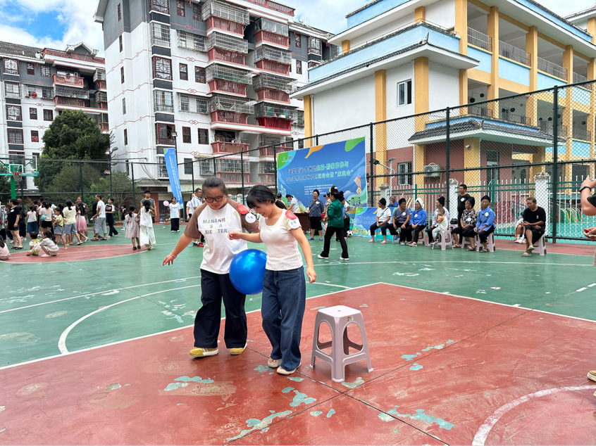 活动精心设置个人组与家庭组两大赛程。个人组比赛包含定点投篮、板凳足球、S型走位、垫球快跑四个闯关项目,巧妙融合体能与技巧挑战,参赛者们全情投入;家庭组比赛则以协作配合为核心,设置“球肢不得”、叼球技巧、五色缤纷三个项目,让家庭成员在互动中培养默契。趣味互动中凝聚亲情与邻里情谊,现场加油声与欢笑声此起彼伏。