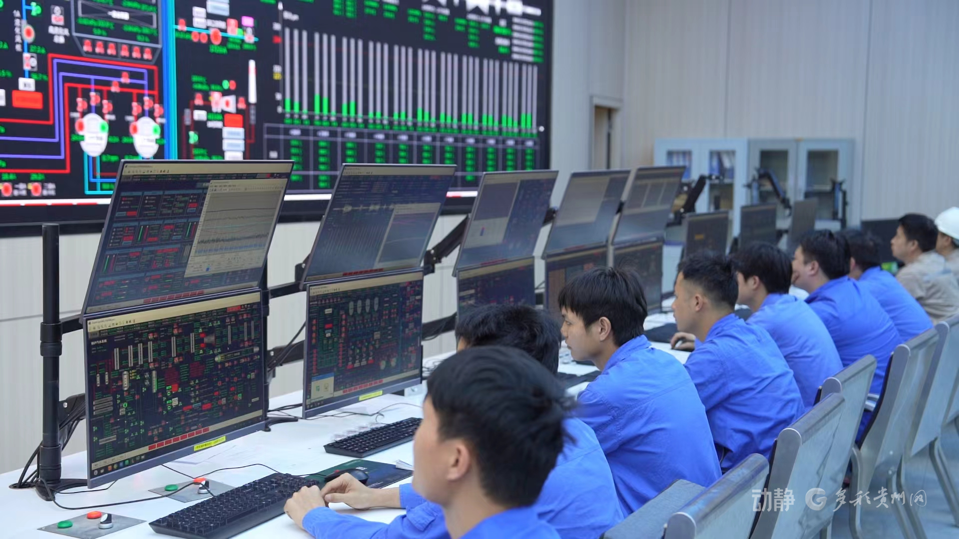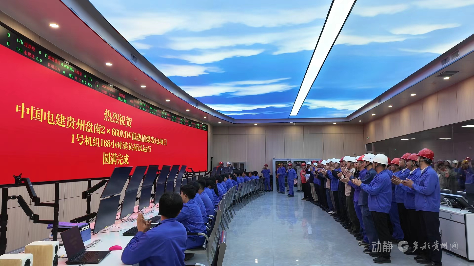 在项目集控室,随着倒计时结束,盘南低热值煤发电项目一号机组顺利完成试运行,各系统运行参数稳定,各项指标均达到设计标准。