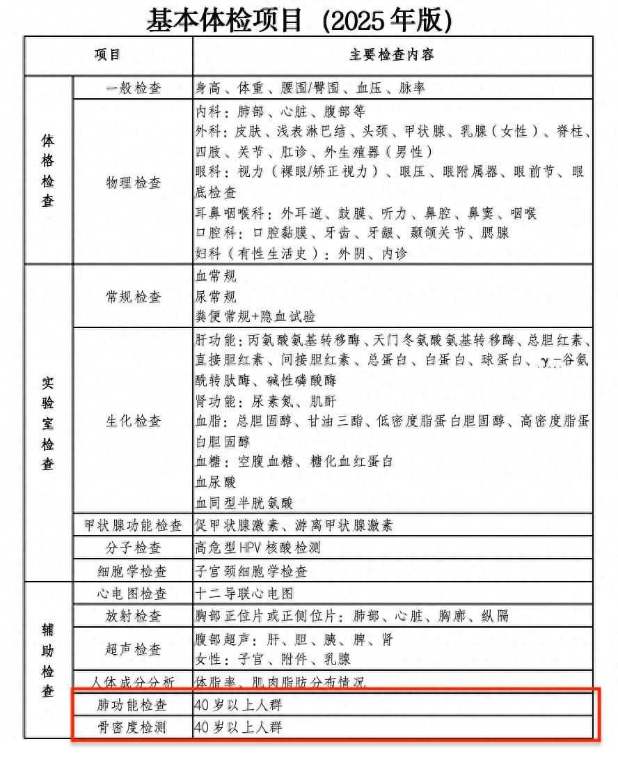 《指引》明确了所有成人都需完成的“基本体检项目”,是建立健康档案的核心基础,无需额外纠结是否选择:
