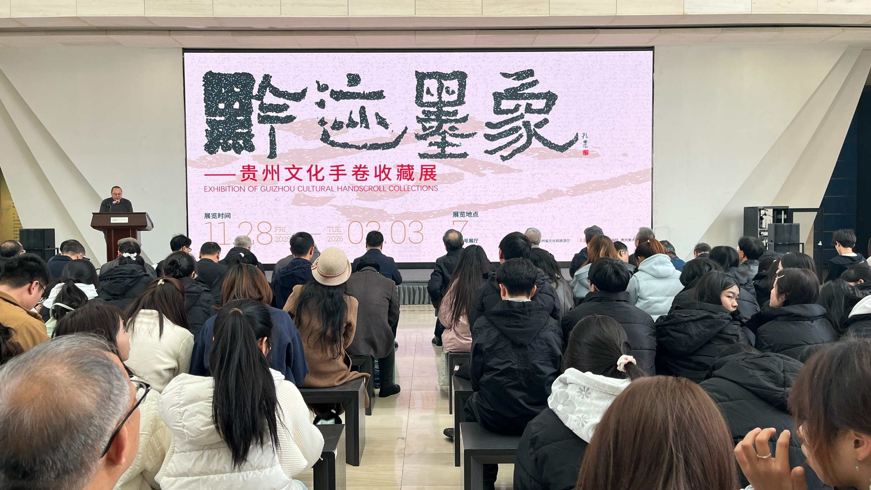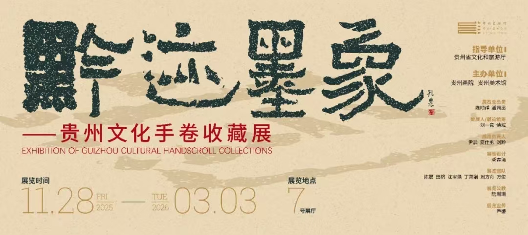 2025年11月28日,由贵州省文化和旅游厅指导,贵州画院(贵州美术馆)主办的《黔迹·墨象——贵州文化手卷收藏展》在贵州美术馆隆重开幕。本次展览以“黔迹·墨象”为主题,聚焦千年文脉,展现黔地文化精髓,通过“手卷”这一传统艺术形式系统梳理了贵州从古至今的文化发展脉络。