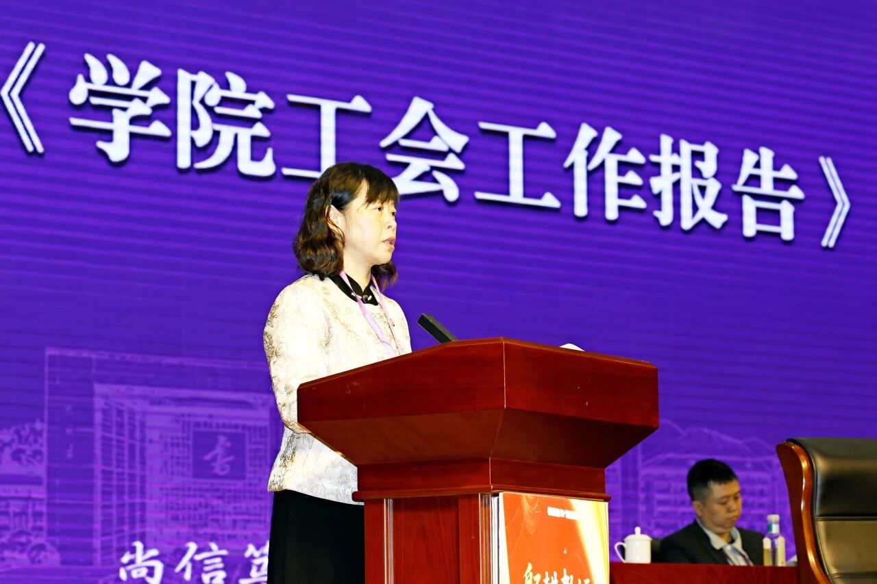 学院工会副主席任萍代表上届工会委员会作《忠诚履职聚合力 服务赋能谱新篇》的工作报告。报告指出,过去五年来工会在思想政治引领、民主管理建设、职工关爱服务、校园文化培育、组织自身建设等方面成效显著,先后涌现出9名“最美劳动者”、1名“五一”劳动奖章获得者以及省级“好爸爸”“好孩子”各1名,工会工作多次获上级表彰,真正成为全院教职工信赖依靠的“娘家人”,为学院高质量发展注入强劲动力。