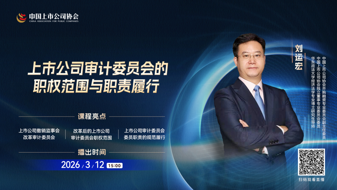 证监会于2024年12月27日发布《关于新〈公司法〉配套制度规则实施相关过渡期安排》,以及2025年3月发布的《上市公司章程指引(2025年修订)》,要求上市公司在2026年1月1日前,在公司章程中规定在董事会中设审计委员会,行使《公司法》规定的监事会的职权,不设监事会或者监事。为帮助上市公司更好地学习相关内容,中国上市公司协会将举办“上市公司审计委员会的职权范围与职责履行”直播培训。具体安排如下: