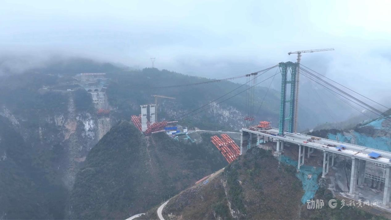 贵州公路工程集团公司安盘高速7标段项目部工作人员汪杰表示,一是受制于横跨桥位区的500kv高压线影响,采用了大高差、非对称、单塔缆索吊装系统,在不迁改高压线的同时,实现了拱圈的安全施工。二是中央交界墩受力不平衡是核心问题,我们采用了智能监控、稳定索智能张拉系统、北斗定位等措施,顺利解决了该问题。
