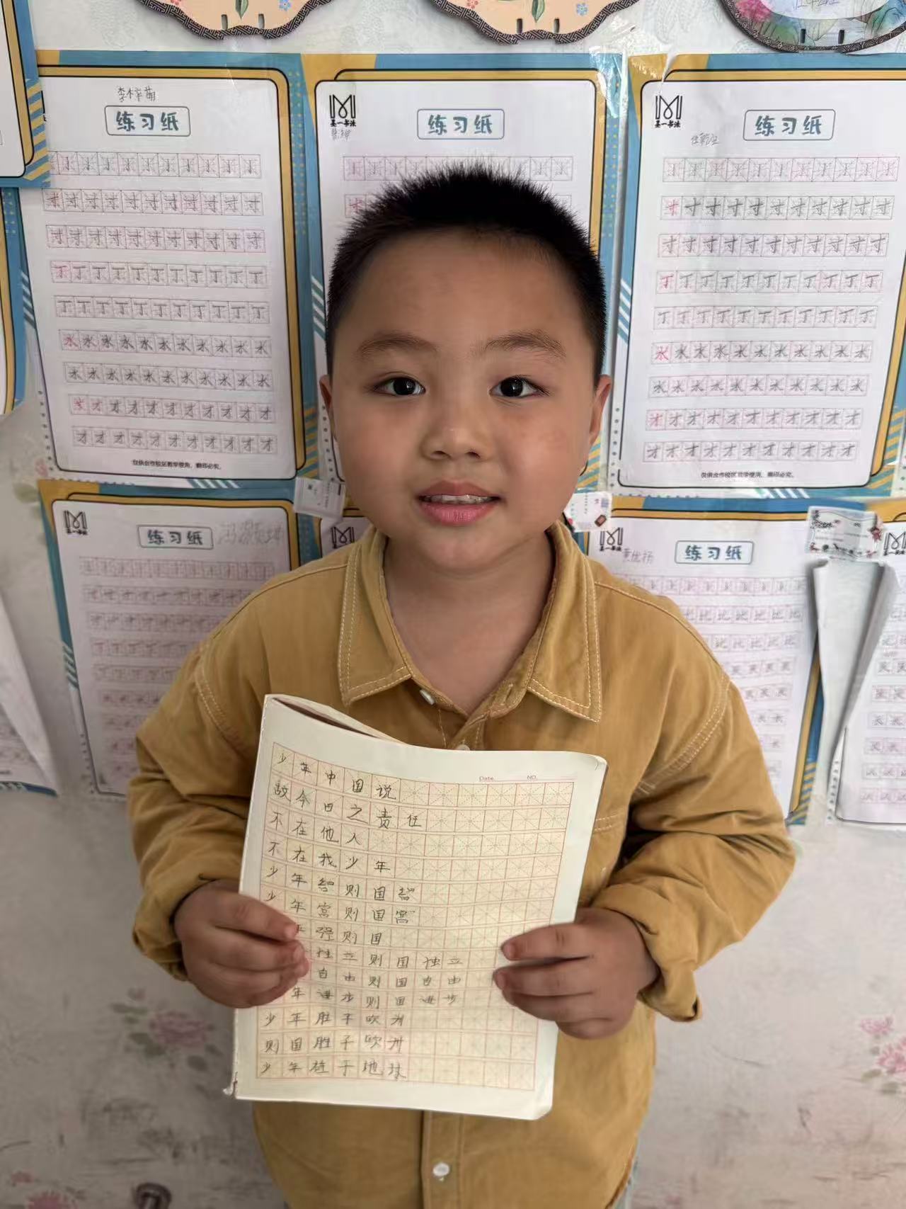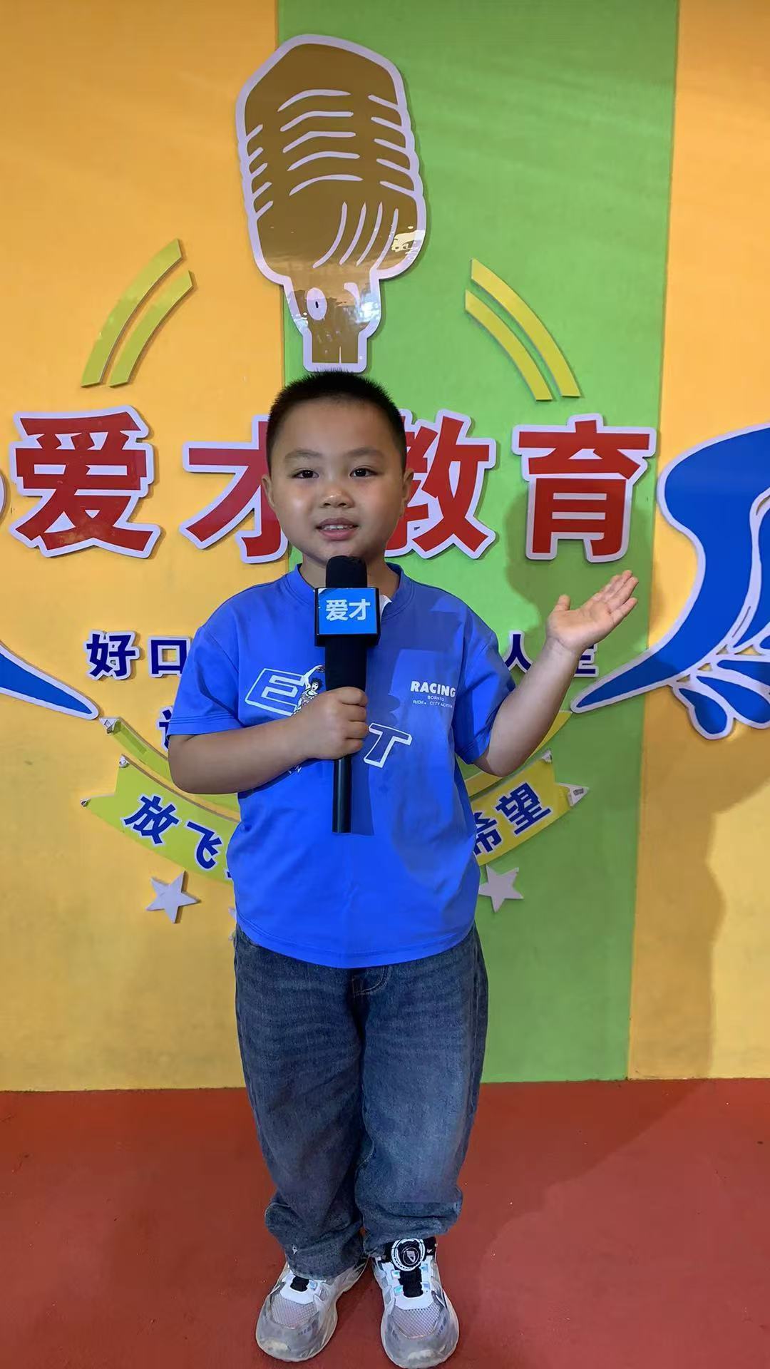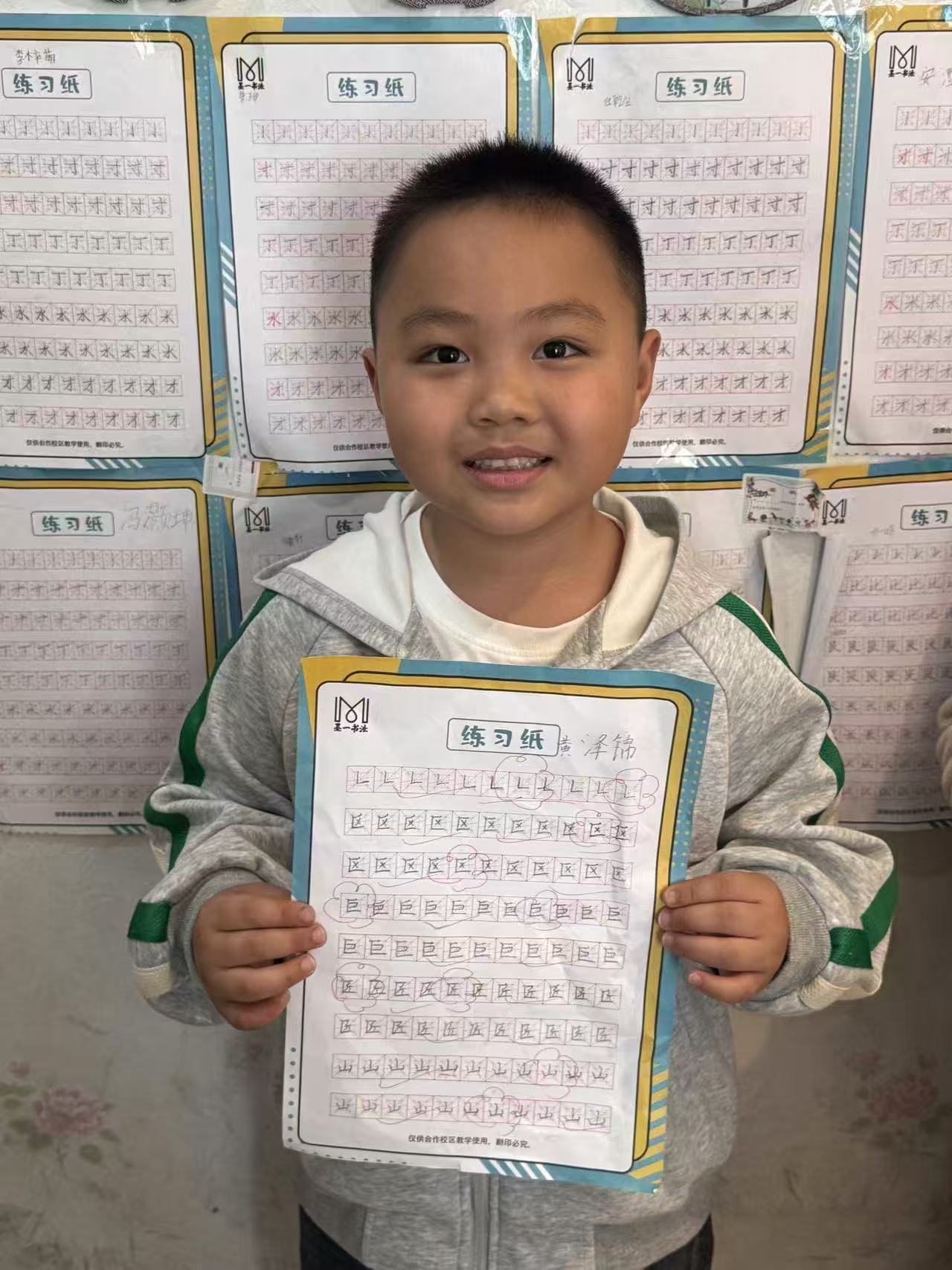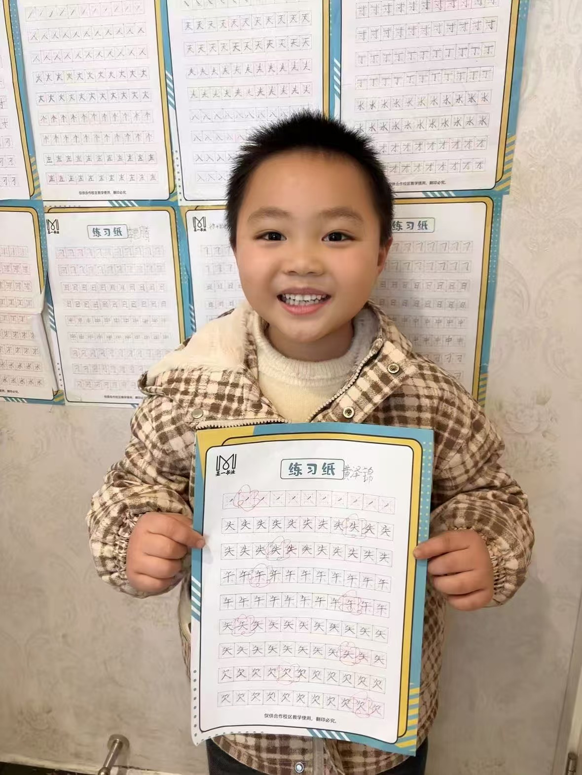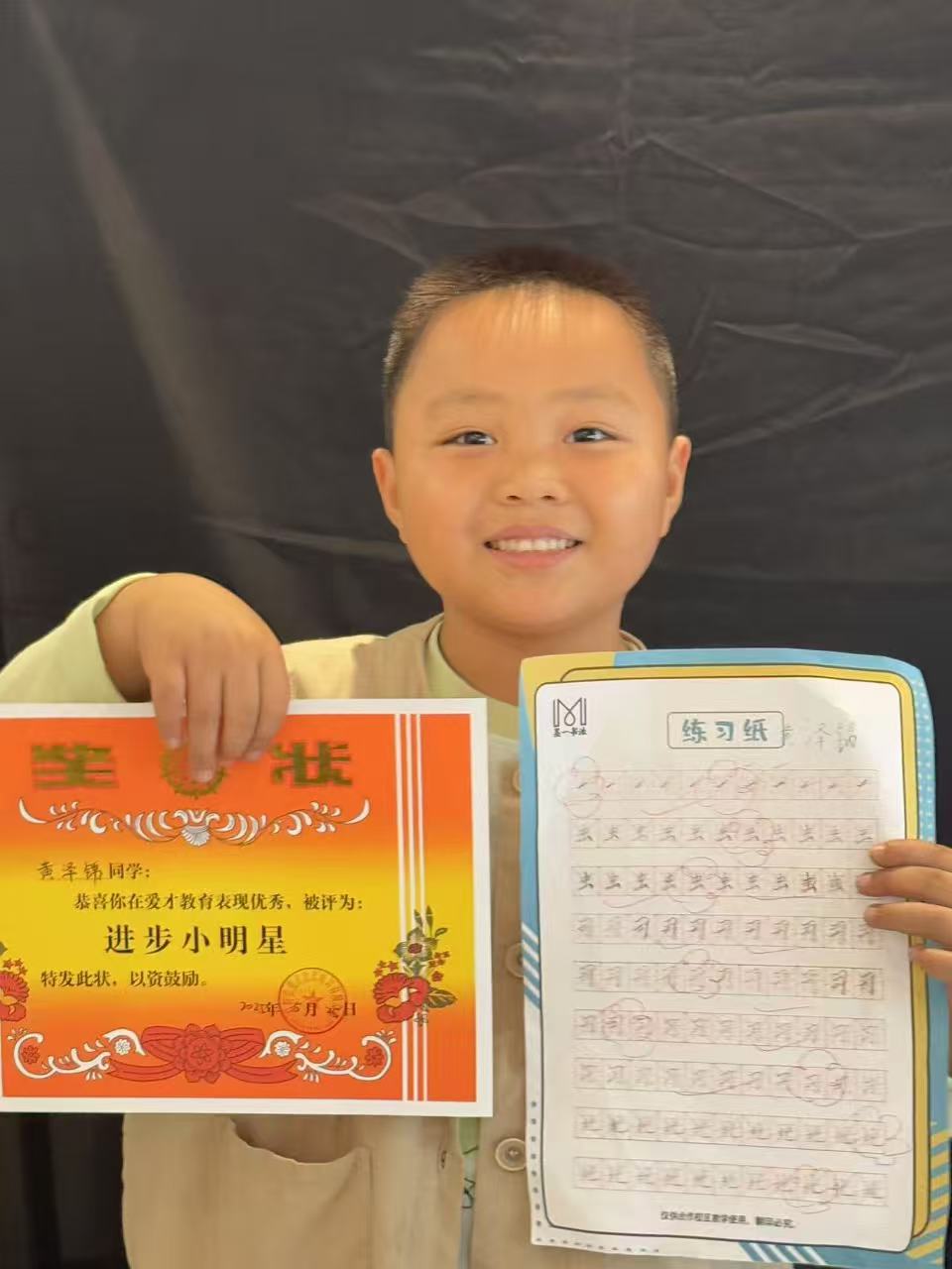 这位一年级小学生的日常被两大爱好填满:书法与小主持。自六岁起,黄泽锦便踏上练字之路,每日雷打不动地临摹字帖——从横平竖直的基础笔画,到完整篇章的流畅书写,一笔一划间悄然培养出耐心与专注。与此同时,口才学习也从未停歇:他跟随老师打磨发音、精进朗诵、锻炼即兴表达,一次次的朗读训练,让这个原本就开朗的男孩愈发自信大方。