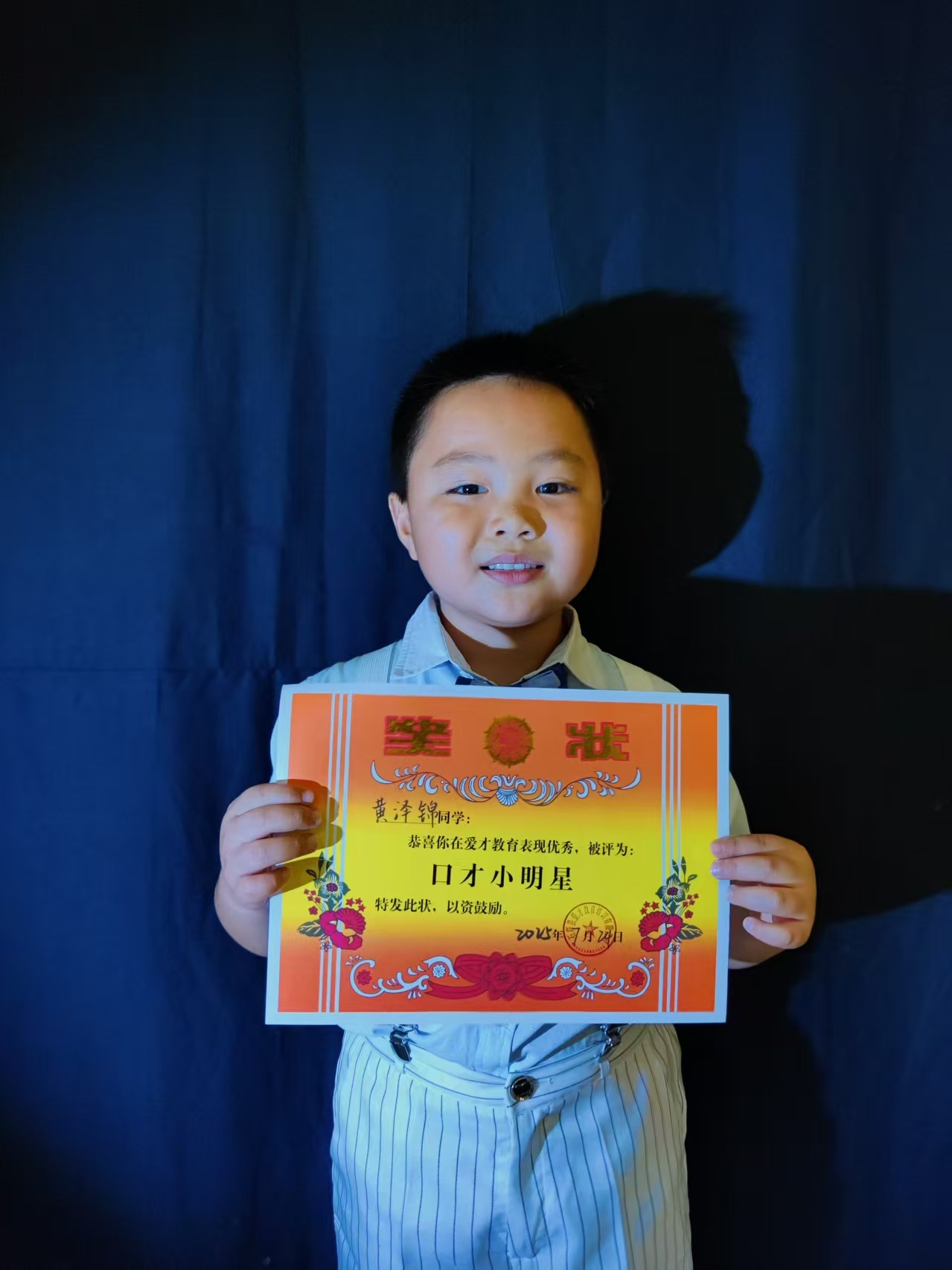 “大家好,我叫黄泽锦,今年七岁,我是一个活泼开朗的小男孩,总喜欢用灿烂的笑容感染身边的人。”这是黄泽锦惯用的开场白,也是他性格的真实写照。