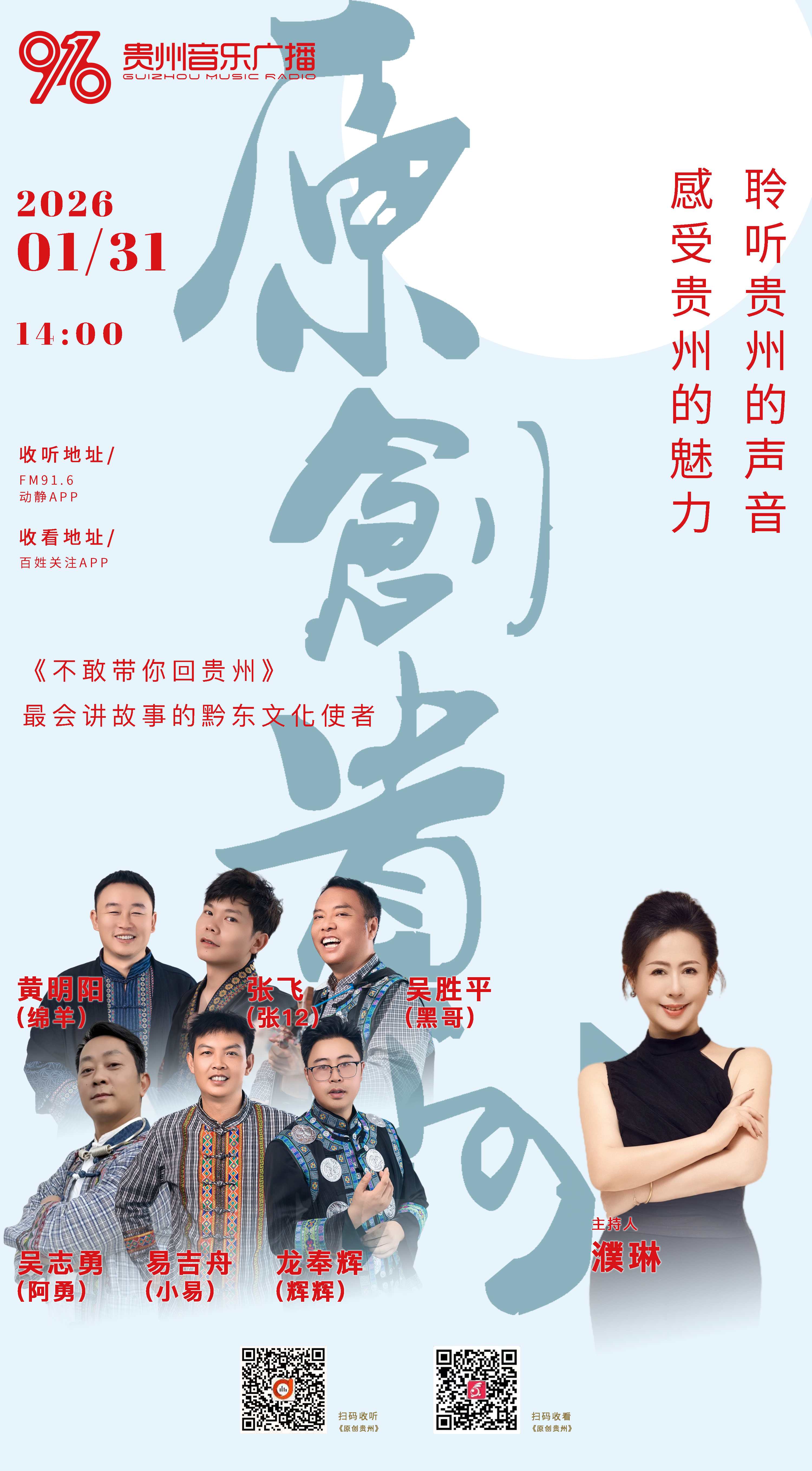 1月31日(周六)14:00,FM91.6贵州音乐广播“原创贵州·对话”《不敢带你回贵州》最会讲故事的黔东文化使者--黔东鬼才团