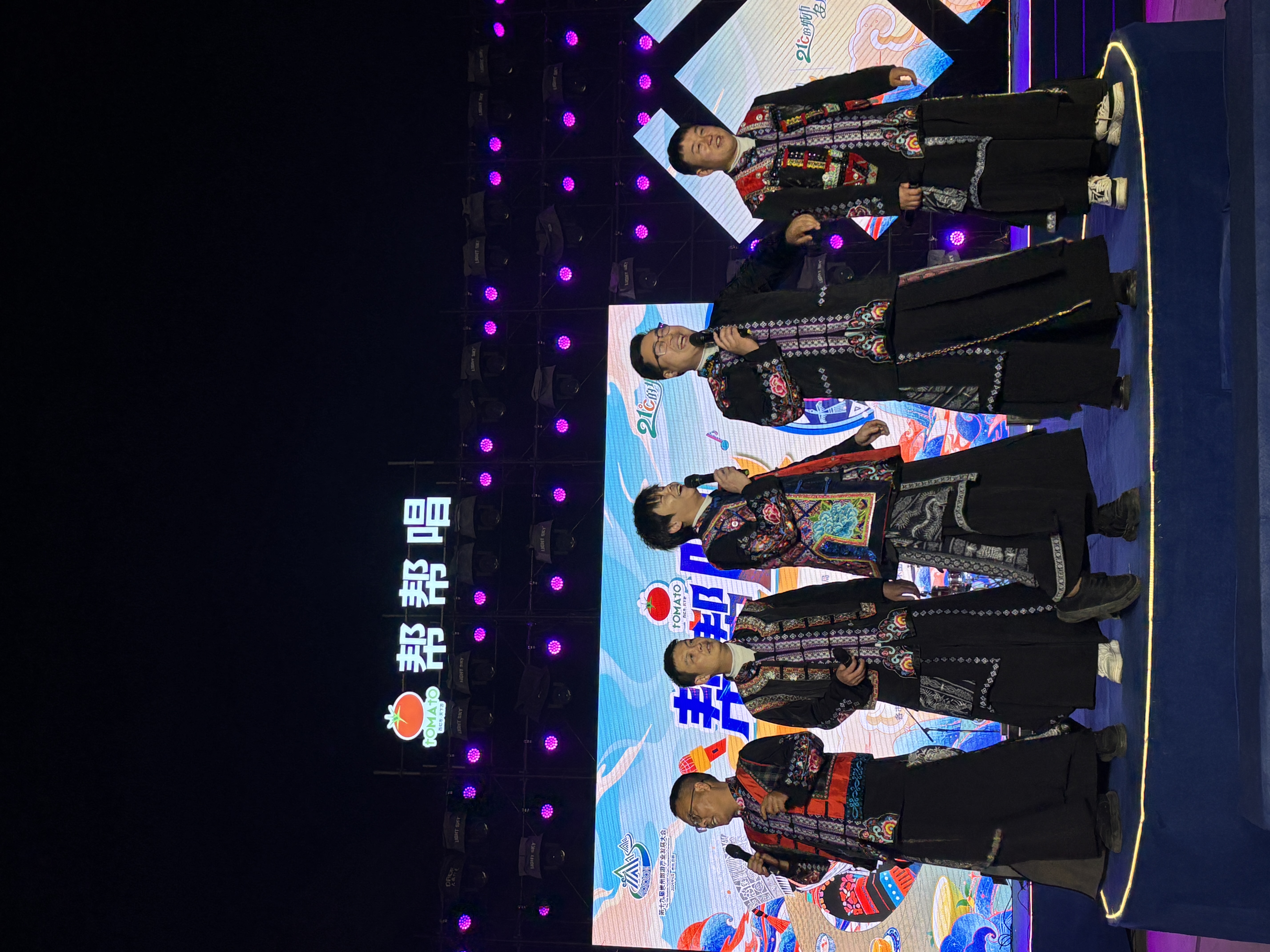在原创歌曲《不敢带你回贵州》火遍全网后,他们趁热打铁推出了松桃村晚“蹦苗迪”主题曲《快来和我打老根》,这首融合松桃山歌调式的歌曲也迅速走红,并荣获2025年“歌声中的贵州”原创音乐大赛最佳原创音乐作品奖;“黔岭歌飞”贵州省第五届民族歌曲创作征集大赛二等奖。黔东鬼才团团长黄明阳表示,就想为家乡做些实事,宣传松桃乃至整个贵州文旅,也被授予“铜仁文旅推荐官”称号。《快来和我打老根》不仅是一首获奖作品,更是一张由黔东山水与文化共同署名的响亮名片,发出的不仅仅是音符,而是一份热情洋溢的贵州文旅邀请函。