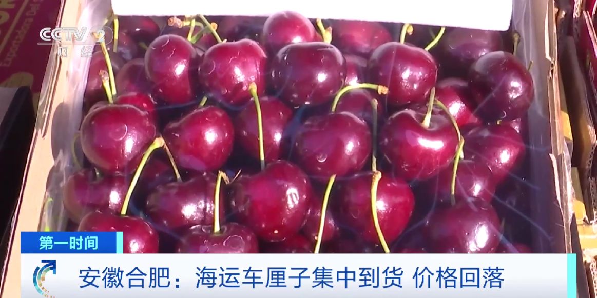在安徽合肥的农产品市场记者看到,受海外车厘子供应量大幅增加的影响,车厘子批发价格普遍回落。