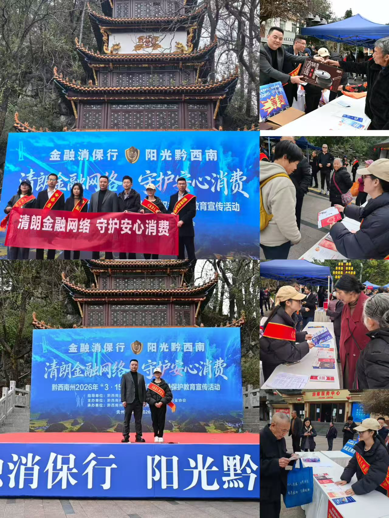 3月10日,在黔西南金融监管分局的指导下,由黔西南州保险行业协会、银行业协会联合主办的“金融消保行 阳光黔西南”主题宣传活动在兴义市大佛洞广场正式启动。此次活动以“清朗金融网络 守护安心消费”为口号,旨在聚焦金融知识普及与消费者权益保护,营造安全、清朗、放心的金融消费环境。作为活动的积极参与者,大家财险黔西南中支全程参与本次宣传活动,以实际行动守护金融消费者合法权益,助力提升社会公众金融素养。