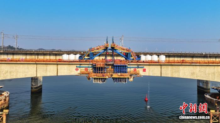 近日,随着主跨连续梁最后一方水泥土浇灌入中跨合龙段,南防铁路钦州至防城港段增建二线工程茅岭江特大桥连续梁主跨顺利合龙,这标志着西部陆海新通道重点项目建设取得新进展。