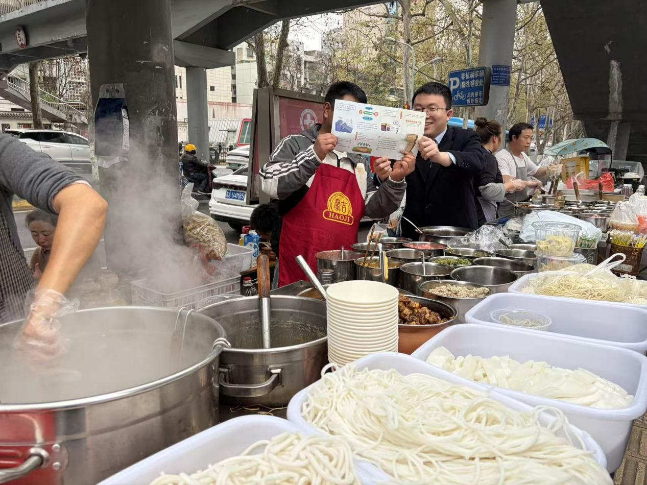 盐务街片区商户密集、人流量大,日常现金交易需求旺盛,部分商户却存在拒收现金的认知误区。活动当天,支行工作人员放弃传统集中宣讲模式,采取上门走访、逐户宣讲的贴心形式,穿梭在街巷商铺之间,与经营户面对面沟通、零距离讲解,让金融政策真正走进每一家店铺。