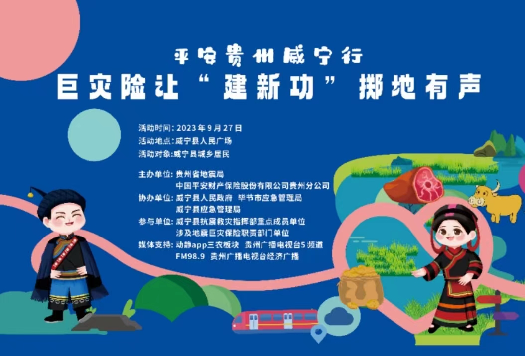 近期,贵州省地震局会同省财政厅、省银保监局、省应急厅、中国平安财产保险股份有限公司贵州分公司等共同推进地震巨灾保险试点示范项目,确定了在贵州省威宁县先行先试,为县域内约128万人和45.56万户居民生产、生活用房,以及赴威宁县境内开展应急救援、保险勘察理赔工作的应急救援人员,出差、旅游等流动人员承保,年度累计赔偿最高达2亿元,为让威宁县的老百姓以及来威宁旅游、工作的朋友更深刻的了解“巨灾险”的赔付细则,贵州省地震局与中国平安财产保险股份有限公司贵州分公司共同主办了“平安贵州”威宁行----“巨灾险”让“建新功”掷地有声活动,活动现场会有哪些亮点呢?9月27日我们现场见吧!