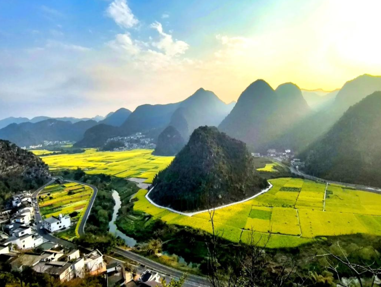 这里平均海拔1200米,夏无酷暑、冬无严寒,森林覆盖率达68.5%,布依村寨散落其间,稻田层层叠叠,形成了“峰林+田园+村寨”的绝美画卷。春季,油菜花海铺满田间,与奇峰相映,金黄一片;夏季,稻田青翠,云雾缭绕,如仙境般静谧;秋季,稻谷金黄,硕果累累,尽显田园诗意。