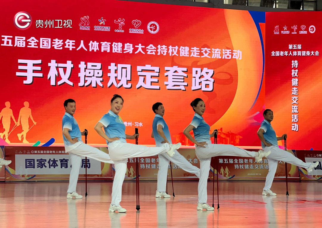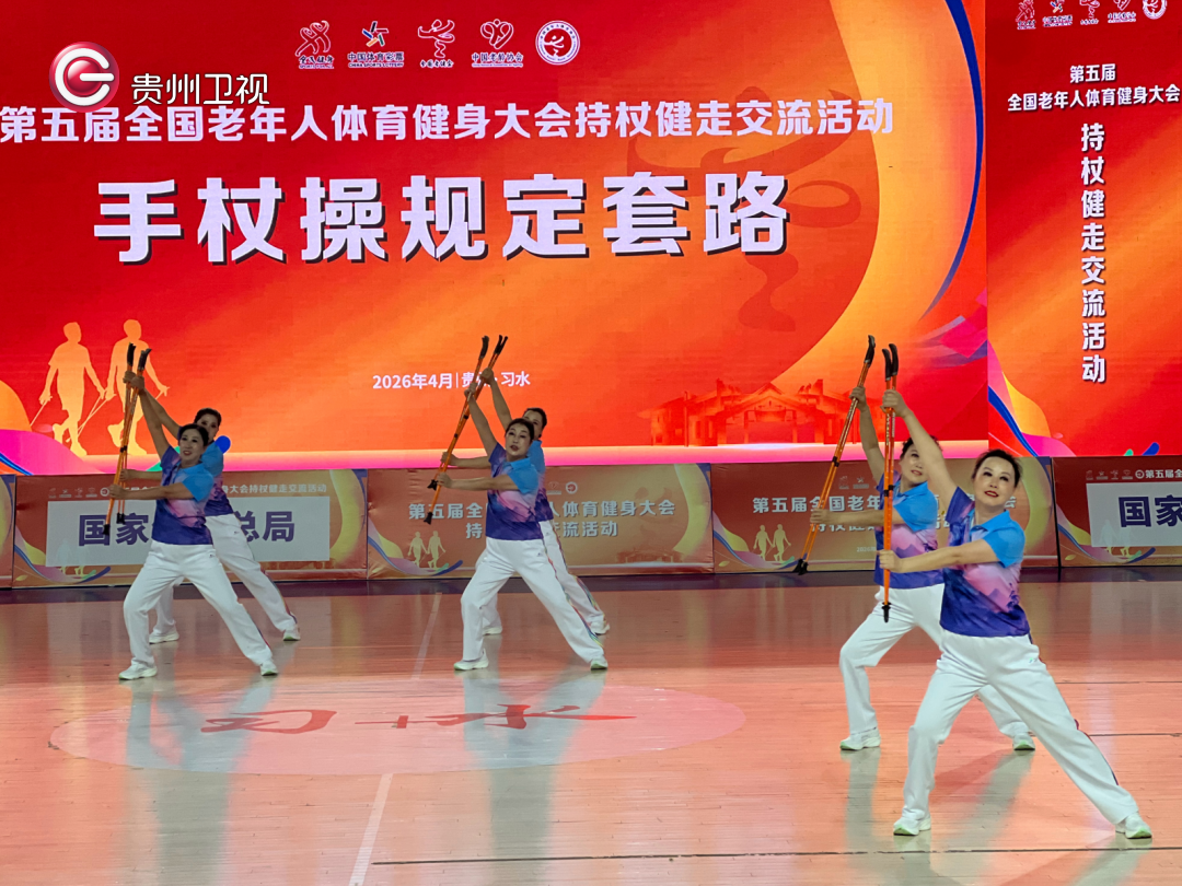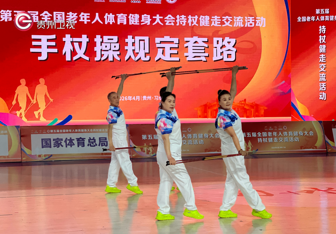 4月16日,第五届全国老年人体育健身大会持杖健走交流活动手杖操规定套路与自编套路比赛在习水县体育馆精彩上演。来自全国34支代表队的老年运动员精神矍铄、意气风发,以规范整齐的动作、创意十足的编排,充分展现老年人健康向上、乐享生活的精神风貌。