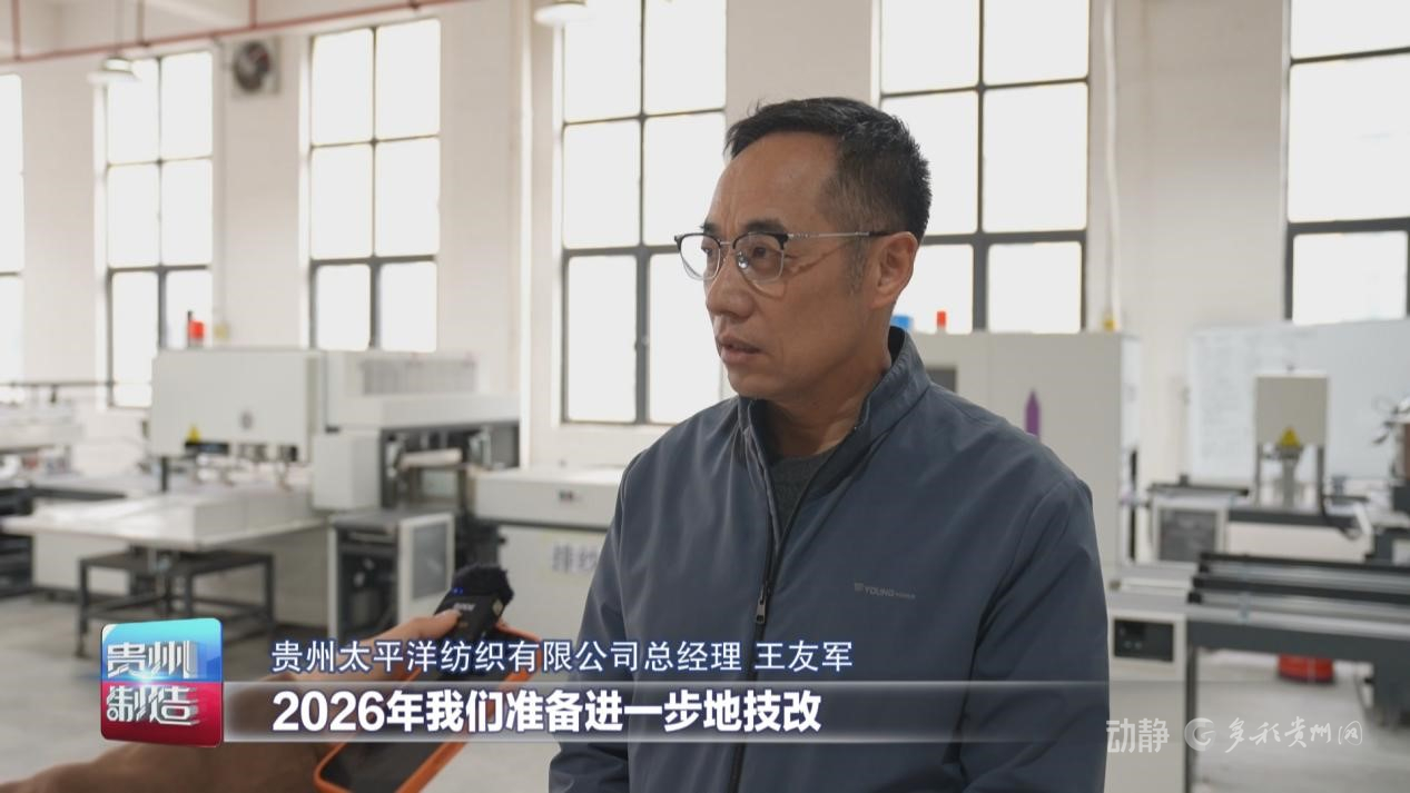 贵州太平洋纺织有限公司总经理王友军说,2026年准备进一步地技改,预计要投入3900万元,产能要扩大20%,今年的产值目标是要达到3.5亿元,通过拉长产业链进一步提高附加值。