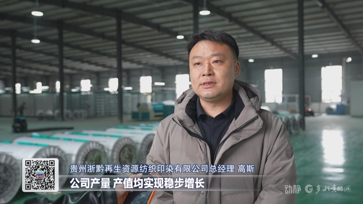 贵州浙黔再生资源纺织印染有限公司总经理高斯表示,过去一年,深入学习贯彻习近平总书记考察贵州时的重要讲话精神,扎实推进生产经营,公司产量、产值均实现稳步增长,将以新项目、新产品、新动能,不断提升产能规模与核心竞争力,奋力推动企业高质量发展再上新台阶。