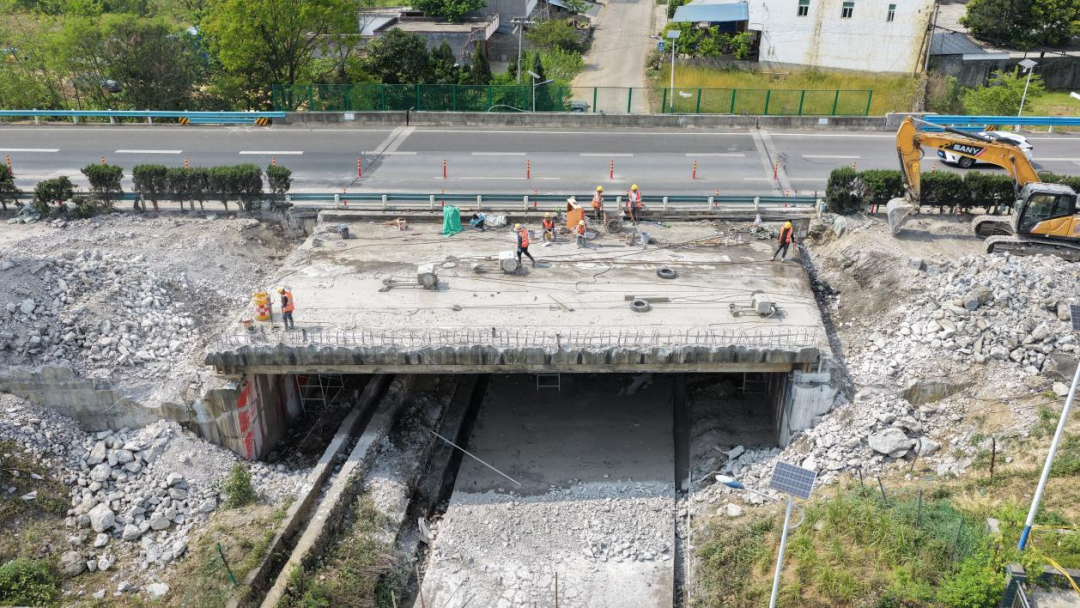 面对涉路施工交通组织难、车流量大等挑战,项目部提前对接“一路三方”,科学确定借道开口位置,规范布设790米改道及安全设施,组织专项安全技术交底,全程监护确保作业安全高效。此次拆除为后续桥梁改造扫清关键障碍,有力支撑项目高质量落地。