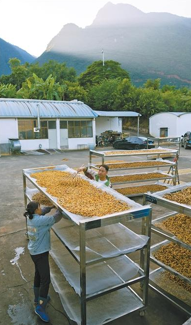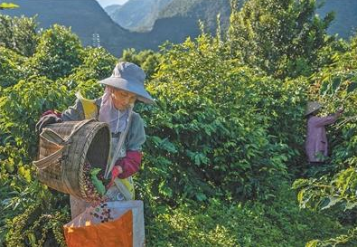 云南省保山市日前迎来咖啡收获季,当地咖农趁晴好天气采摘、加工咖啡果。