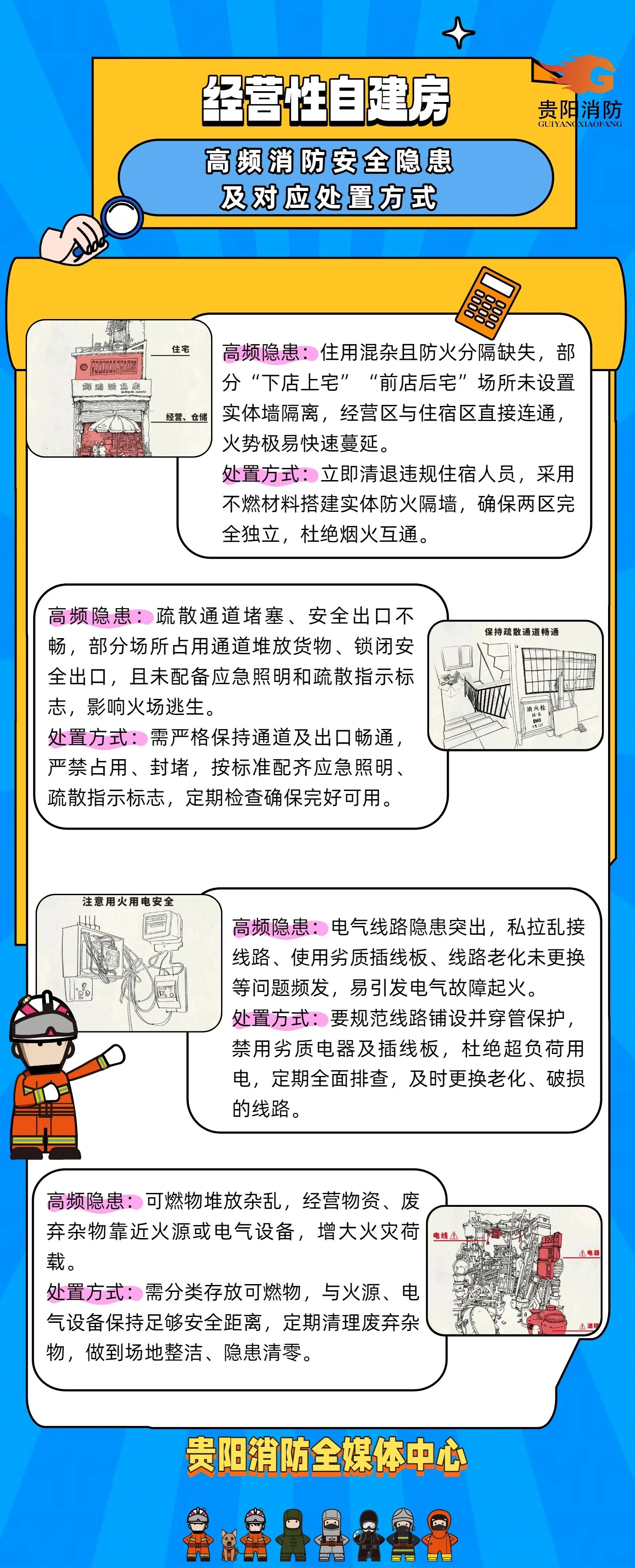 结合现场实景,能清晰看到经营性自建房存在的火灾风险短板,同时结合多起火灾案例,提炼出区别于警示教育片单案例诱因、在实际火情中高频出现的消防安全隐患项,贵阳市消防救援支队给出了详细的火灾处置攻略,为相关场所负责人和从业人员普及科学逃生的火灾应对方法,筑牢经营性自建房消防安全防线。