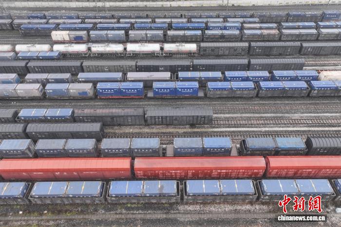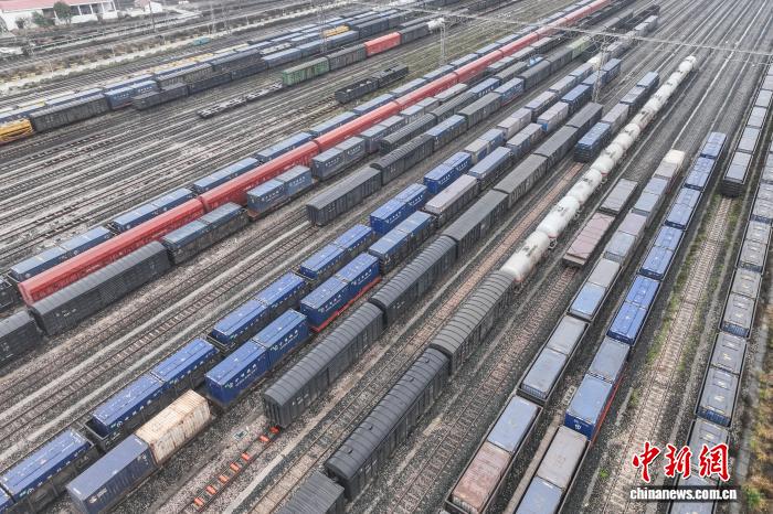 2月9日,航拍贵阳南车站编组站。(无人机照片)中新社记者 瞿宏伦 摄