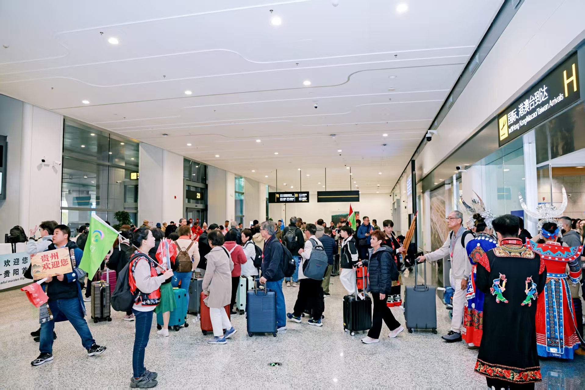 “很期待来到贵州,来感受少数民族的生活,还有一些美食。”刚下飞机的马来西亚古晋游客刘女士难掩兴奋之情,“早上赶飞机,上了飞机用完早餐,睡一觉就到贵阳,真的太方便了。”带领旅行团来到贵州的旅游领队黄女士同样激动不已:“这次很荣幸能够带我们古晋的团来到贵州旅游,而且是乘坐直飞航班。非常期待能去感受贵州的美丽风光、丰富的民族文化和好吃的小吃。”