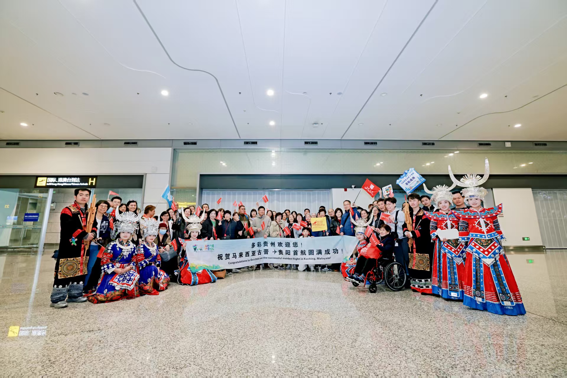 马来西亚古晋-贵阳直飞首航成功!169名东马游客开启8天6晚多彩贵州探索之旅