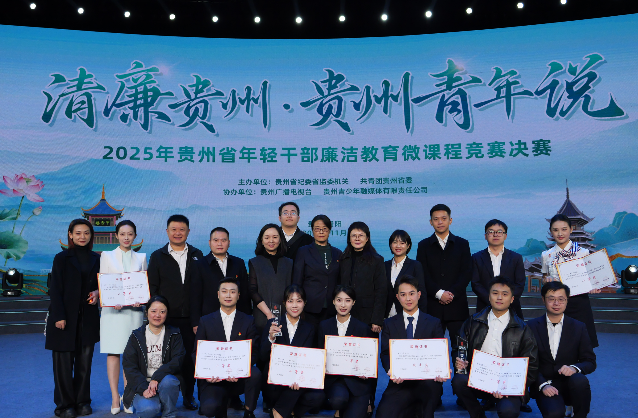 11月18日下午,2025年贵州省年轻干部廉洁教育微课程竞赛决赛在贵州广播电视台演播厅圆满落幕。本次竞赛的主题是“清廉贵州·贵州青年说:学规定·守纪律·正作风”,竞赛现场,佳作连连,竞争激烈,贵阳农商银行报送的4部作品从21个入围作品中脱颖而出,最终斩获佳绩:一等奖1项、二等奖2项并获优秀奖1项。