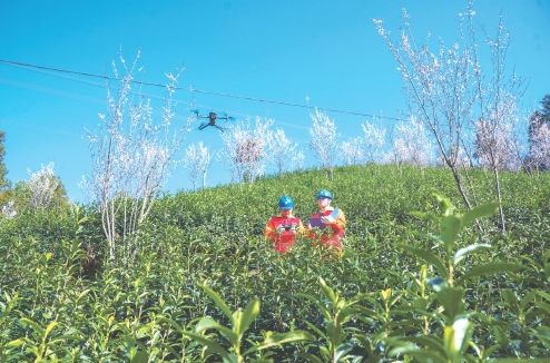 随着气温回暖,浙江省丽水市各地春茶进入采摘炒制关键期。国网丽水供电公司组织员工深入茶园茶企,对炒茶设备、配电线路进行“数据监测+人机巡视”立体运维,全力护航春茶飘香。图为工作人员在惠明茶园开展专项巡检。季维娜 章子妍 摄