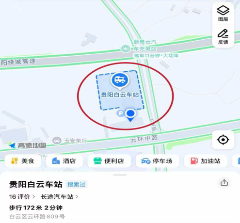 导航定位至贵阳市白云车站后,按下图所示前行600米。