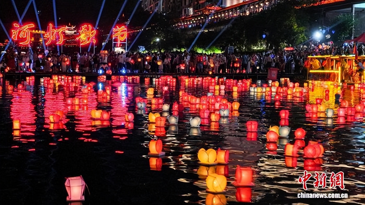 广西桂林资源县举办一年一度的河灯歌节。这场传承千年的民俗活动,通过融入现代科技与创新形式,不仅让“万盏河灯映资江”的传统盛景焕发新生,更吸引了来自世界各地游客的目光,成为中国传统文化“活态传承”的生动缩影。