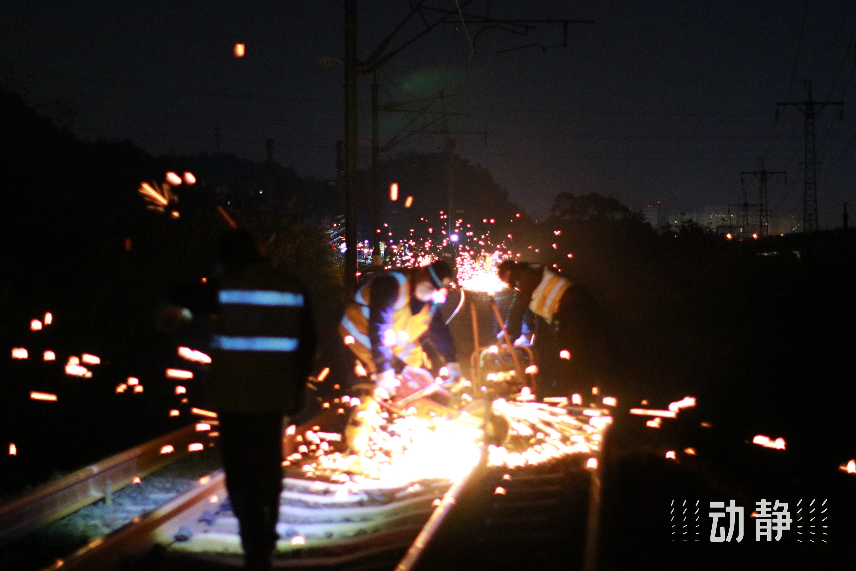 10月15日,成都局集团有限公司贵阳高铁工务段100余名作业人员圆满完成了贵阳北动车所长轨更换施工1500米。