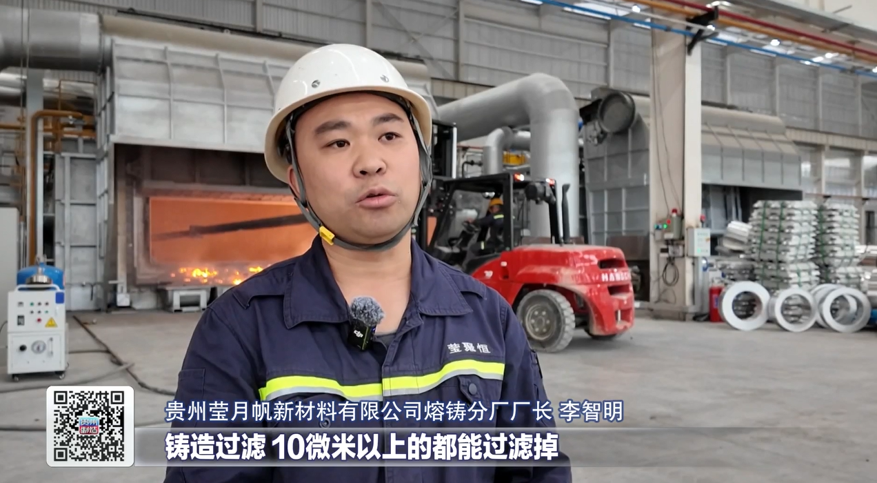 贵州莹月帆新材料有限公司熔铸分厂厂长李智明说,这条生产线铸造过滤中,十微米以上的都能过滤掉,而且纯度更高,能实现新能源汽车的电芯、电池箔的生产要求。
