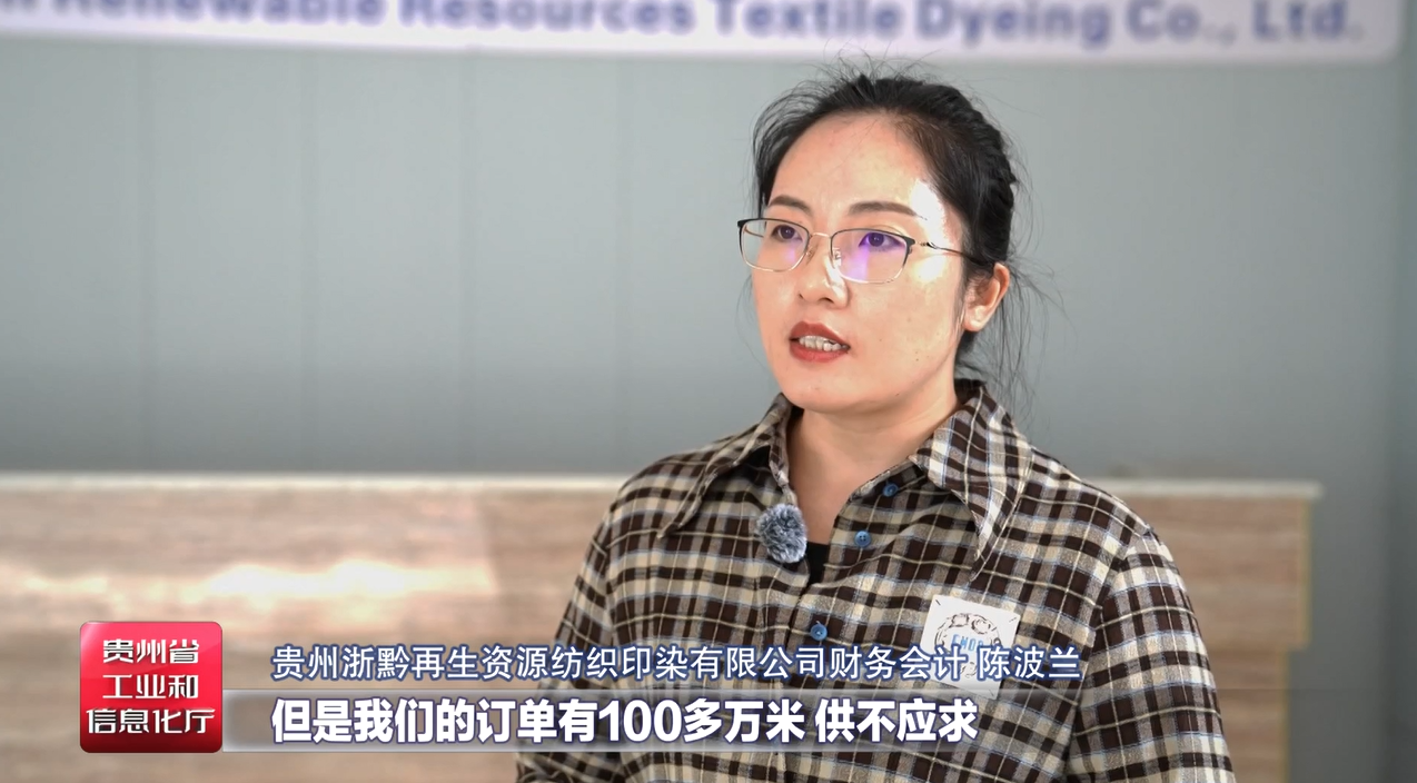 贵州浙黔再生资源纺织印染有限公司财务会计陈波兰说,目前他们已生产了30多万米,但是订单有100多万米,产品供不应求,这批订单预计在10月中旬交付。