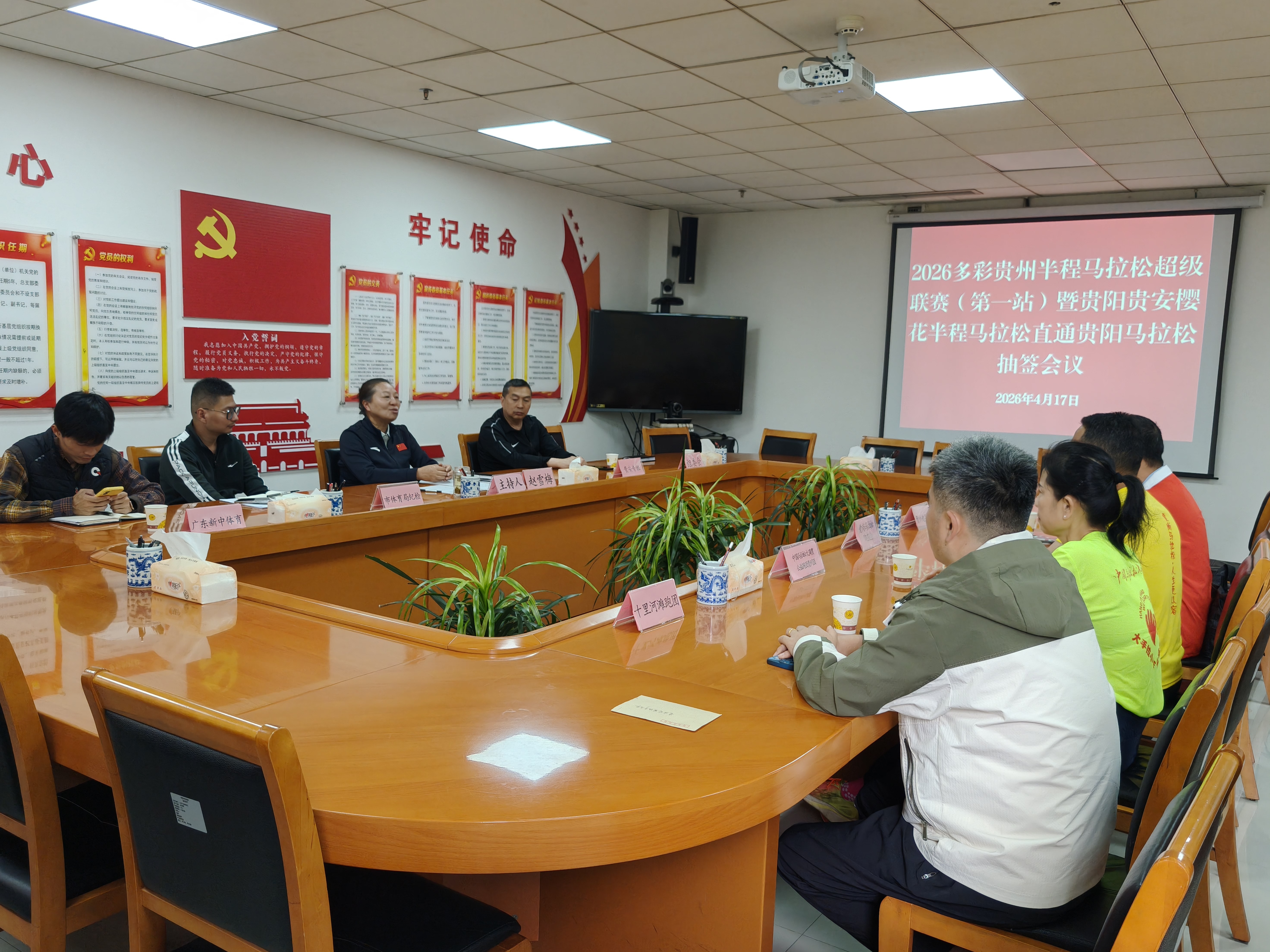 下午两点半,在贵阳市体育局会议室里,一场关于“幸运”的抽签仪式准时开启。贵阳市体育局二级调研员赵雪梅现场宣布抽签规则。本次抽签采用电子随机抽取方式,在贵阳贵安樱花半马的完赛选手中随机抽取200个直通名额,严格遵循公开、公正、透明原则,并邀请市体育局纪检、体育局贵安专班、贵州趁早跑团、爱尚马拉松跑友会跑团、贵阳十里河滩跑团、中国马拉松大满贯公益跑团贵州团4个跑团代表、贵州广播电视台、贵阳市融媒体中心(贵阳市广播电视台)等媒体代表以及组委会代表共同见证,同时最终结果由全体见证人员签字确认。