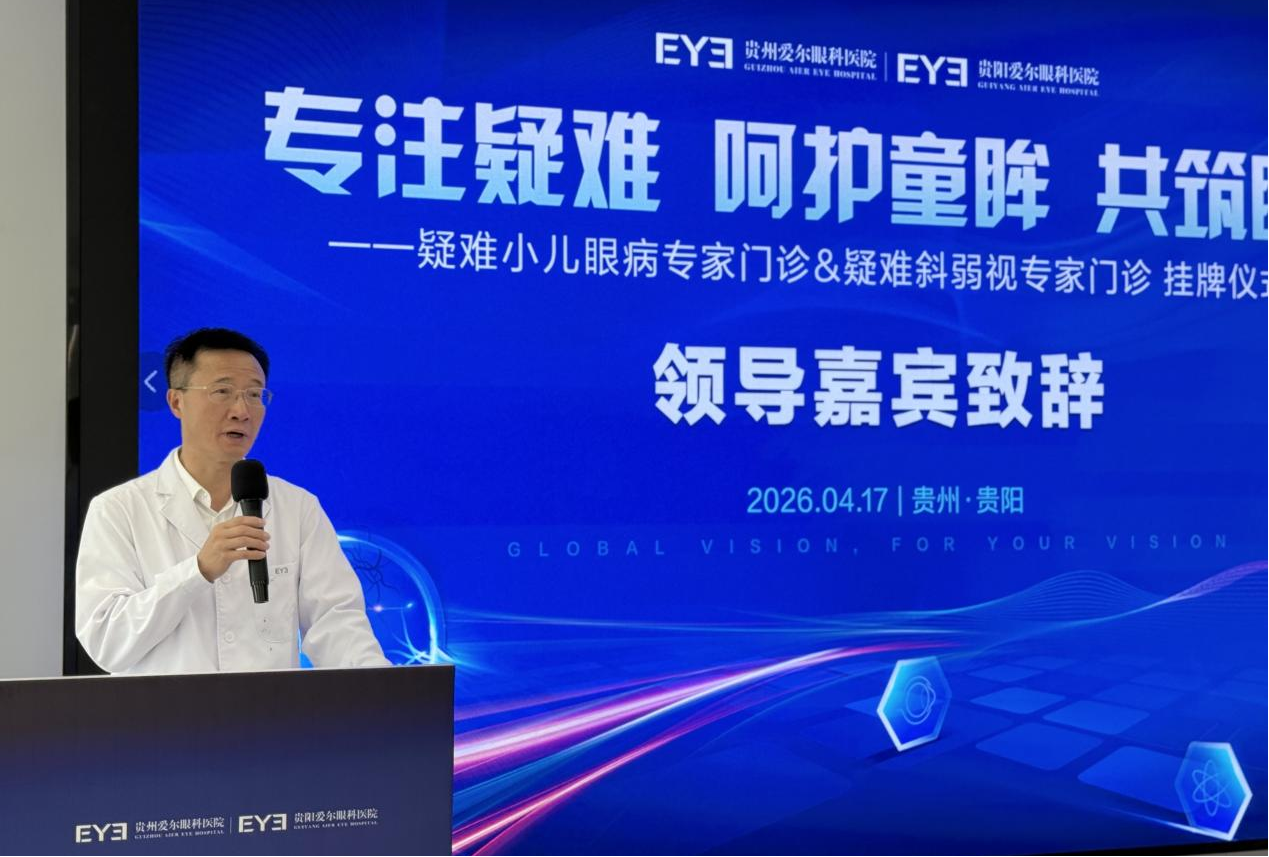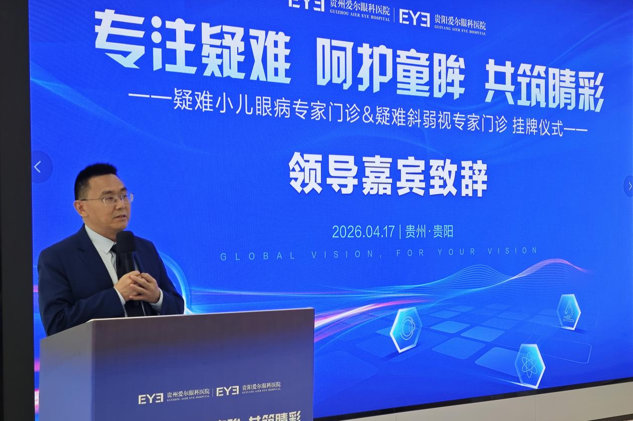 2026年4月17日下午,“专注疑难 呵护童眸 共筑睛彩”——疑难小儿眼病专家门诊与疑难斜弱视专家门诊挂牌仪式在贵州爱尔眼科医院举行。本次活动汇聚了小儿眼科领域多位专家,旨在为贵州地区疑难小儿眼病及斜弱视患儿提供更专业、更系统的医疗服务。