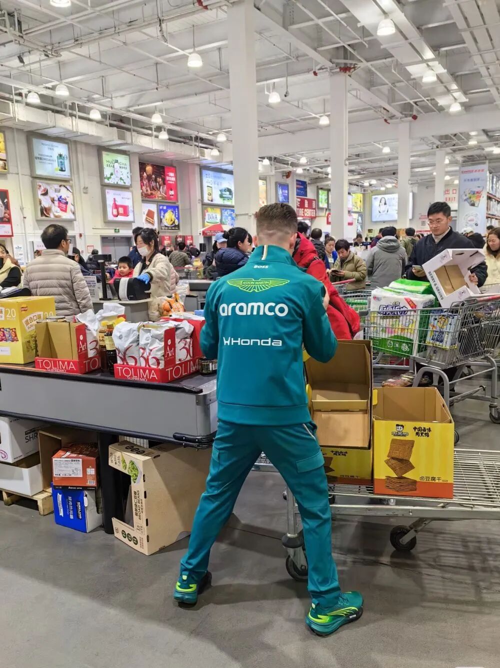 △ 阿斯顿马丁车队工作人员在开市客购物