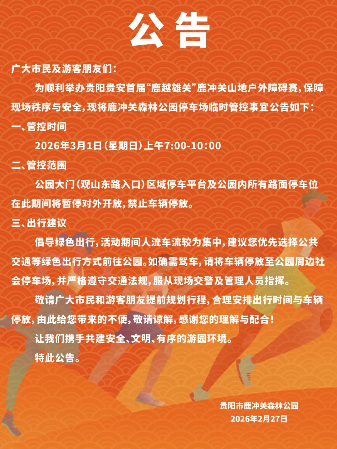 明天上午停车场临时管控!鹿冲关森林公园发布公告