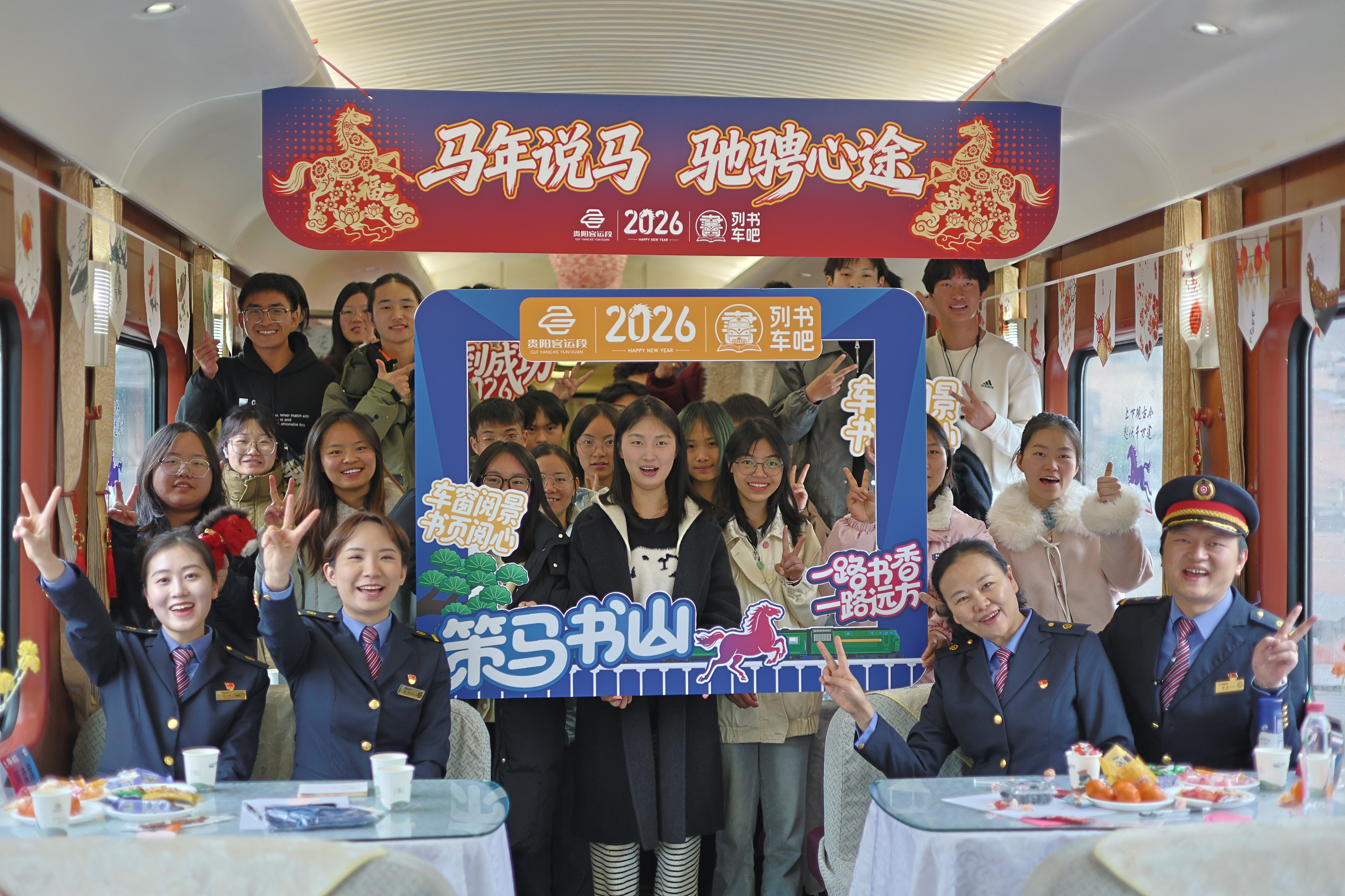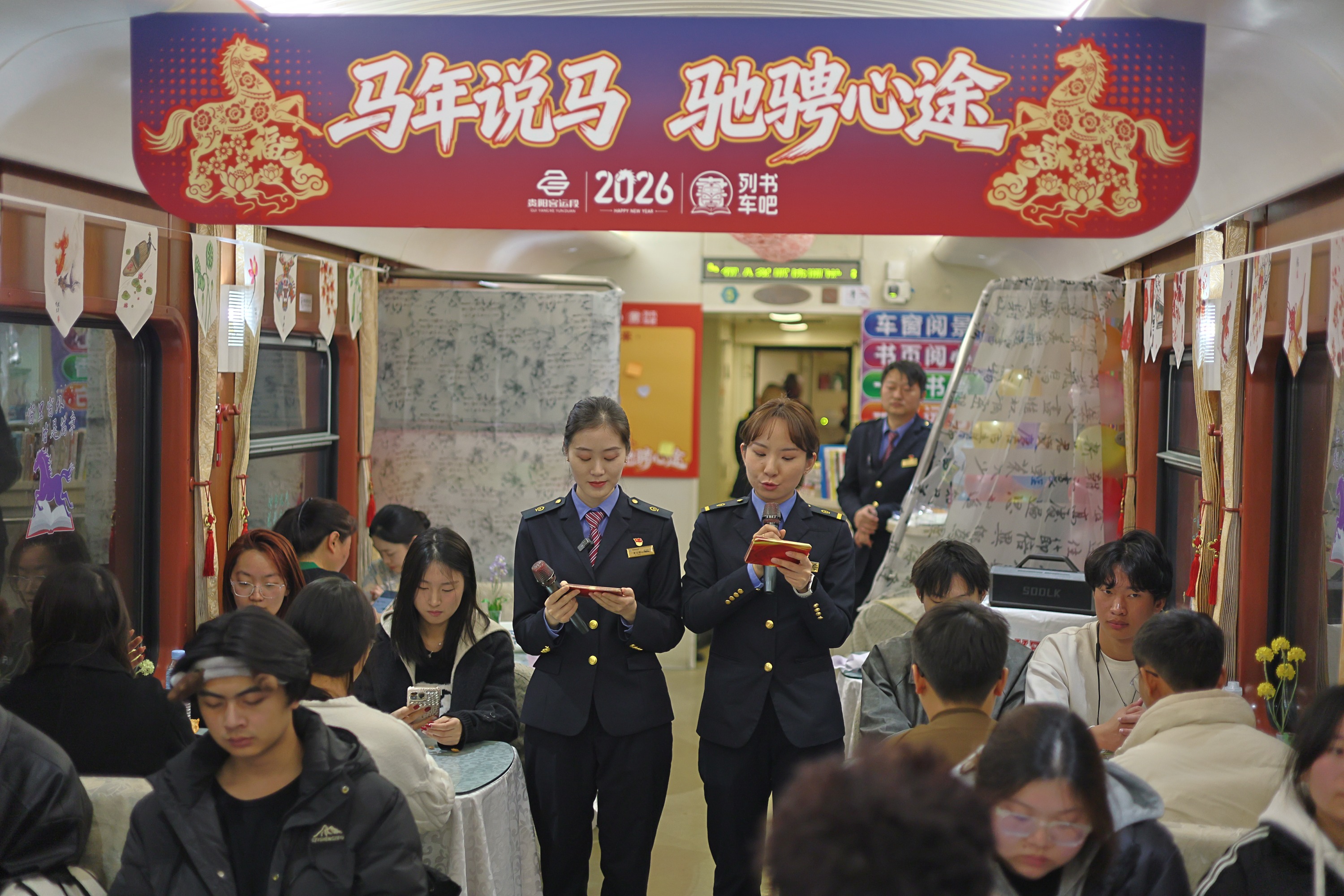 2月27日,随着Z78次列车缓缓驶出贵阳站,这趟连接西南腹地与首都北京,以“马年说马 驰骋心途”为主题的列车书吧活动正式拉开帷幕。恰逢春运学生返程高峰,贵阳客运段将餐车打造成流动的书香空间,为踏上返校路的高校学子们,送上了一场别样的知识与文化盛宴。