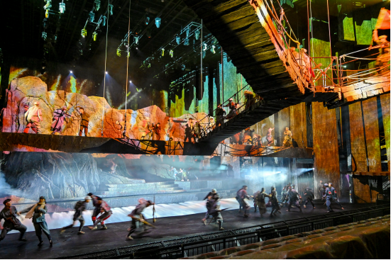 在湖泊场景的打造中,伟大转折剧场舞台运用了先进的高压水类型设备,通过精密的控制系统,模拟出波涛汹涌的水面效果。不仅为演出增添了真实感,更为观众带来了震撼的视听体验。